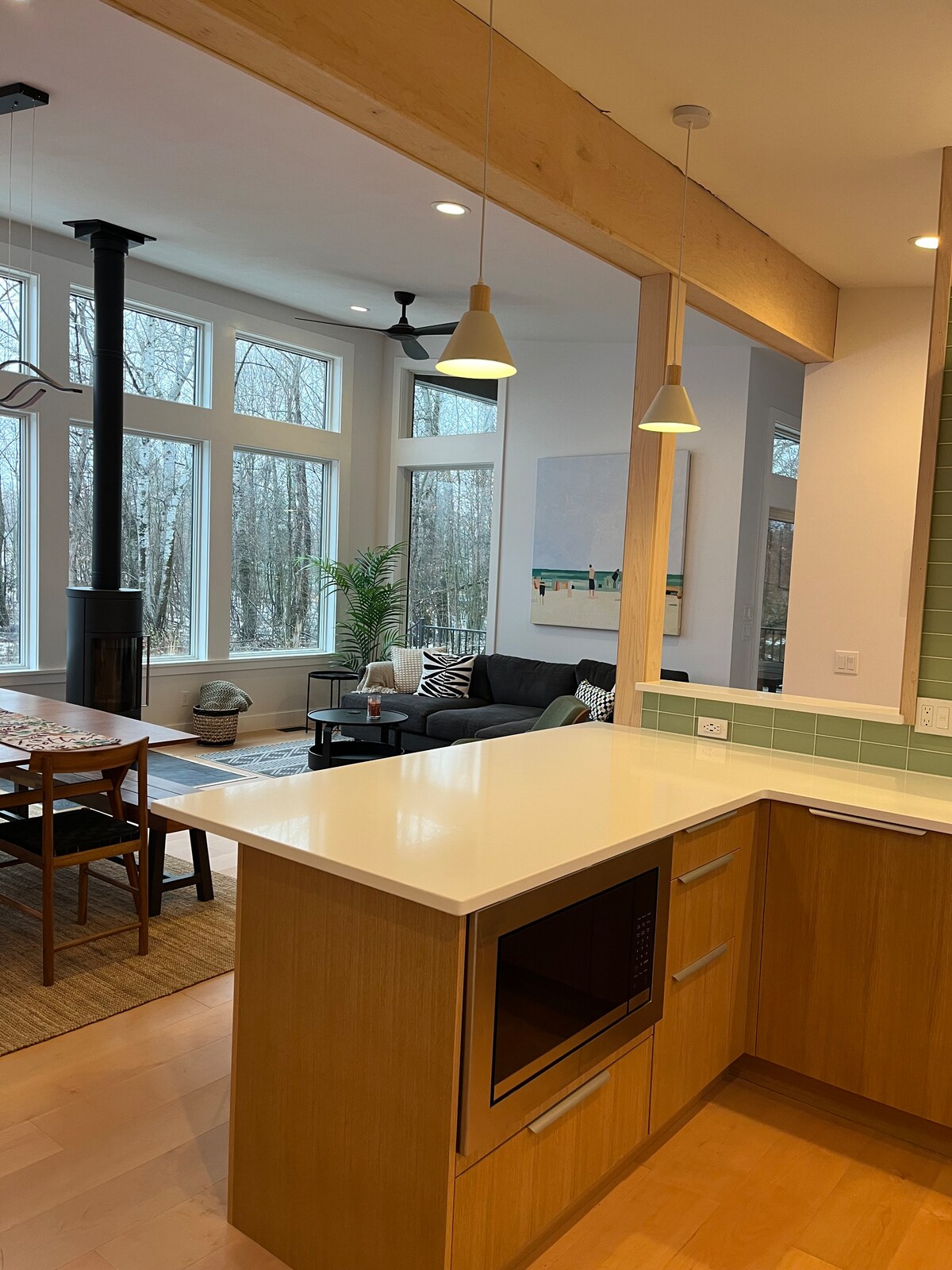 Fáilte go dtí ár dteachín 1940 deartha go tuisceanach sa choill ach nóiméad ó Good Harbor Beach. Tugann an tearmann ciúin seo rochtain duit ar an bhfíon, ar an mbia agus ar an dúlra, tá cáil ar Leithinis Leelanau. Bain sult as an bpoll dóiteáin lasmuigh, gríoscán gualaigh, Wi - Fi tapa, Teilifís Chliste, agus cistin dhea - cheaptha. Taisteal fuaime mar sin bí measúil ar ár gcomharsana. Tá brón orainn, níl cóisirí ná imeachtaí ar bith ann. Tá fáilte roimh chách.
