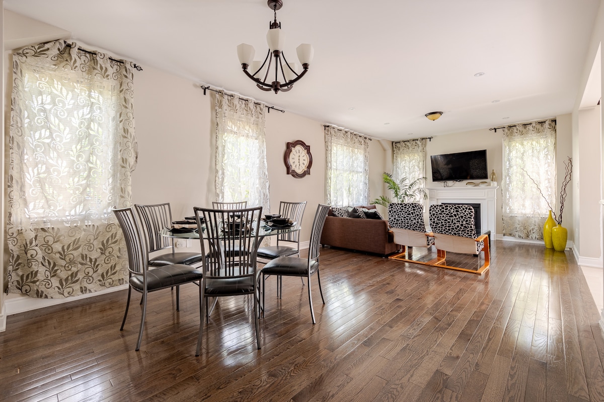 Fáilte chuig ár mbungaló álainn scoite i Maple, nóiméad ar shiúl ó nithe spreagúla. Le 4 sheomra leapa fhairsinge, tá suas le 8 n - aoi ar ár dteach, atá foirfe do theaghlaigh nó do ghrúpaí móra. Cistin ghourmet le fearais nua - aimseartha agus seomra suí teolaí. Tá 2.5 seomra folctha ann, ceann amháin atá feistithe le barraí sábháilteachta le haghaidh soghluaisteachta teoranta. Lonnaithe i Maple bríomhar, déan iniúchadh ar Wonderland, Black Creek Pioneer Village, agus téigh ag siopadóireacht ag Vaughan Mills. Táimid ag súil go mór le fáilte a chur romhat!