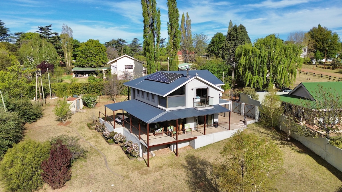 Teach iontach lán le solas geal nádúrtha. Éadan na habhann agus radhairc ar an ngleann agus ar shléibhte. Dhá sheomra suí, le DSTV araon ionas gur féidir leat spórt agus cócaireacht a bheith agat ag an am céanna! Níl ach 6 nóiméad uait ag tiomáint ó The Clarens Square agus 26 bialann, ach is féidir leat do scíth a ligean go hiomlán i suaimhneas na gaoithe agus na gréine. Siúlóidí áille. Plaincéid leictreacha agus tinte dóite adhmaid, cistin lánfheistithe, 4.5 seomra folctha le haghaidh 6 sheomra leapa lena n - áirítear ceann amháin le 4 leaba bhuinc. Tá sé ollmhór ach sa bhaile.