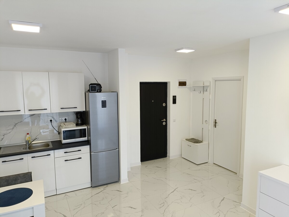 Suíomh cluthar nua - aimseartha, tá an t - árasán stiúideo seo suite cúpla céim ar shiúl ón Seanbhaile, ó Mhúsaem an tSráidbhaile agus ón taobh eile de “ Regina Maria” Central Park, i bhfoirgneamh nua - thógtha. Cuirfidh an t - árasán, atá feistithe go hiomlán agus feistithe, an compord agus an fheidhmiúlacht a theastaíonn uainn ar aon turas agus tá sé foirfe do thaistealaithe aonair, do lánúineacha nó do dhaoine atá ag taisteal chun críocha gnó.