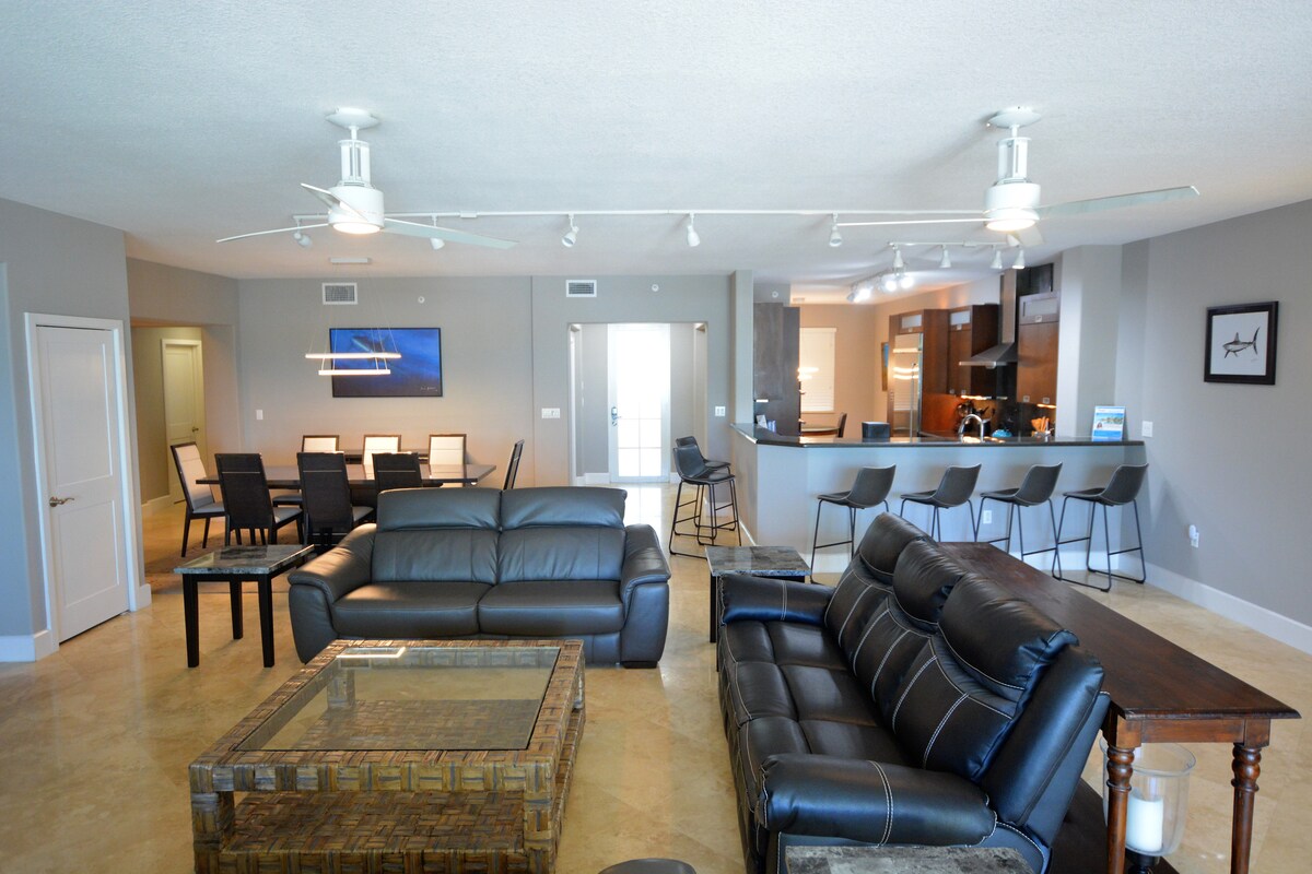 Is árasán só é Bay Harbour Starfish a bhreathnaíonn amach ar báisín mór báid le radhairc ar an Aigéan Atlantach. Tá an árasán 3 sheomra leapa, 2 agus leathfholcadán an - fhairsing seo maisithe i stíl Tommy Bahama le háit chónaithe agus itheacháin mór, lena n - áirítear beár fliuch. Tá an Master suite an - seomra folctha agus i seomra folctha le tobán folctha mór scairde agus cithfholcadán agus vardrús walkin seperate. Tá leapacha ar mhéid na Banríona in dhá sheomra leapa d'aíonna. Tá duillín báid 30'san áireamh le huisce leictreach agus úr. 7 lá ar a laghad.