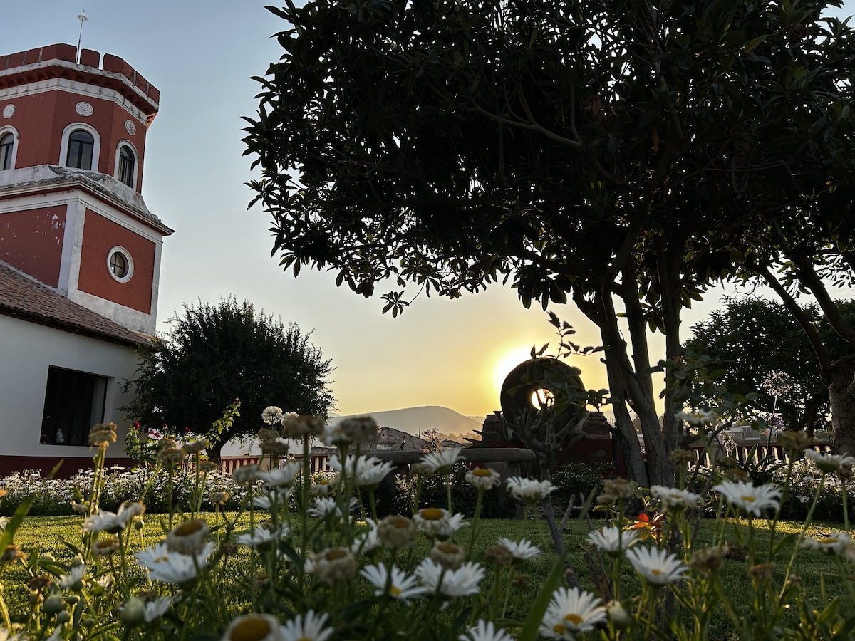 Este lugar elegante y único tiene el escenario para un viaje inolvidable, se levanta en una de las haciendas más grandes de la región en los siglos XVIII y XIX restaurada para brindar confort, lujo y privacidad a nuestros huéspedes. Rodeada de campos y escenarios naturales imperdibles es el lugar ideal para conocer pueblos mágicos como Tlalpujahua, El Oro, Angangueo, zonas naturales como los Santuarios de la mariposa monarca, los azufres, sin olvidar los hermosos rincones que lo rodean.