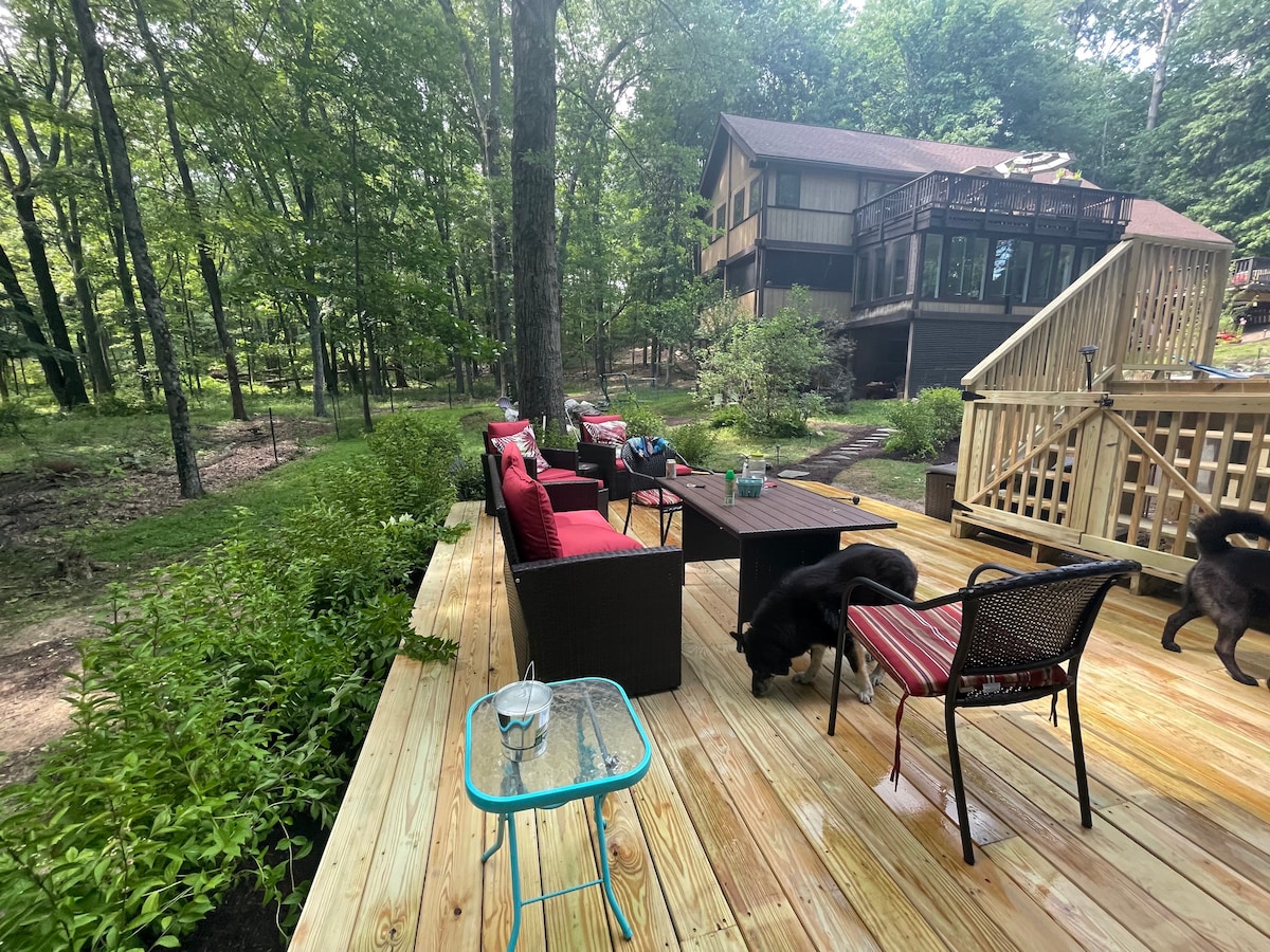 Tagann áilleacht nádúrtha agus stíl mhealltach le chéile ag #killercatmountainhouse, tearmann atá dírithe ar dhearadh 5 nóiméad ó Hunter Mountain—agus 13 nóiméad go Windham Mountain—a thugann eispéireas úr ildaite Catskills. Glac le haimsear an earraigh ón deic fhairsing, ón sauna bairille te, ón bpoll tine agus ón tobán te fairsing, nó lig do scíth ag an teallach le ceirnín agus cluichí. Soláthraíonn ár maisiúchán chic Paraisíoch cuimhní cinn atá oiriúnach do Insta laistigh agus lasmuigh, agus leis na radhairc agus na saoráidí iontacha atá againn is féidir le díograiseoirí an taobh amuigh sult a bhaint as an séasúr ar fad.