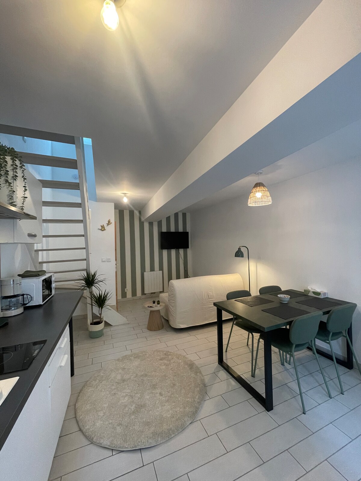 Sealla cluthar, lánfheistithe 19 m2 faoin tuath le lánléargas iontach Foirfe le haghaidh scíth a ligean, fánaíocht, teilea-obair (WIFI) Tá carrchlós mór ag an sealla, lochtán nach bhfuil radharc air Gheobhaidh tú 2 théitheoir leictreacha, seomra suí, cistin feistithe, áit itheacháin, seomra folctha/leithreas Tá spás codlata do bheirt ar an meaisnín, agus tolg leapa le héadaí leapa compordacha ar an mbunurlár Lonnaithe in Alpes Mancelles, Fresnay sur Sarthe/ St Léonard des bois (fánaíocht, cosán)/St Céneri le Gérei (sráidbhaile an-álainn)