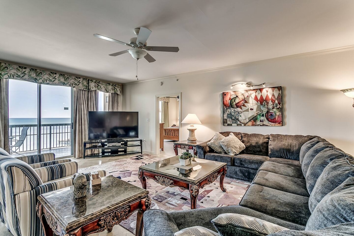 Múscail 21 urlár os cionn an Atlantaigh. Téann deilfeanna thar do bhalcóin, soilsíonn éirí na gréine an seomra, agus níl ach cúpla céim go dtí an trá. Tá spás codlata do cheathrar san árasán úrnua seo cois farraige, ina bhfuil cistin iomlán, balcóin óna bhfuil radharc ar an bhfarraige, agus rochtain ar linnte snámha laistigh agus lasmuigh. Tá tú ar stráice níos ciúine gainimh ach cúpla nóiméad ó Broadway at the Beach, ón SkyWheel agus ó bhialanna iontacha. An radharc a bhí á lorg agat.