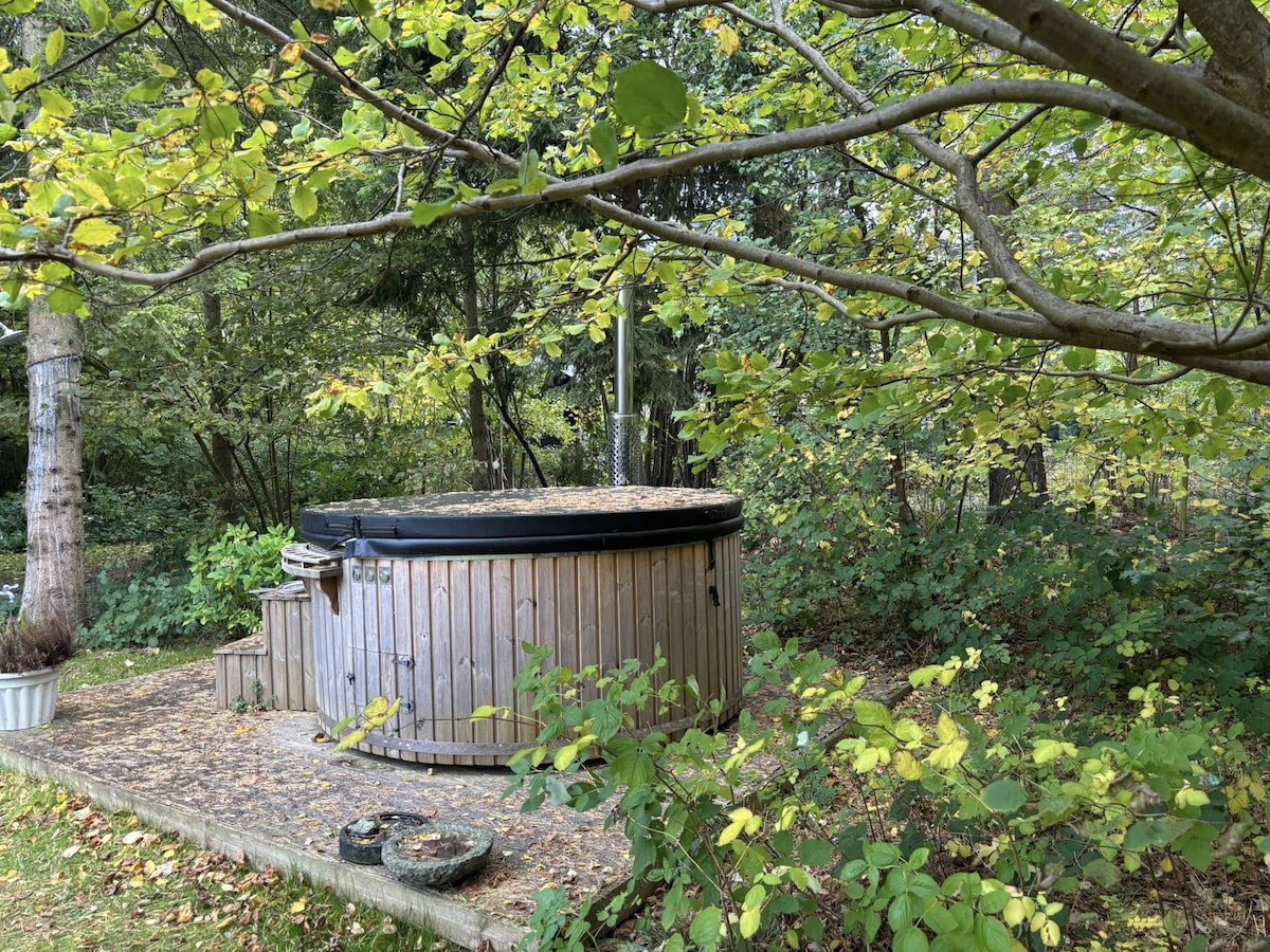 Take a break from the stress of everyday life in this wonderful cottage on the edge of the forest. Here, peace is only interrupted by pheasants and deer that regularly visit the garden. The house offers 2 bedrooms and 1 office with stylish and comfortable décor. The living room has high ceilings and large windows that let nature come in. You can enjoy the large garden where the sun shines from morning to evening or enjoy uninterrupted time in front of the fireplace or in the spa in the garden.