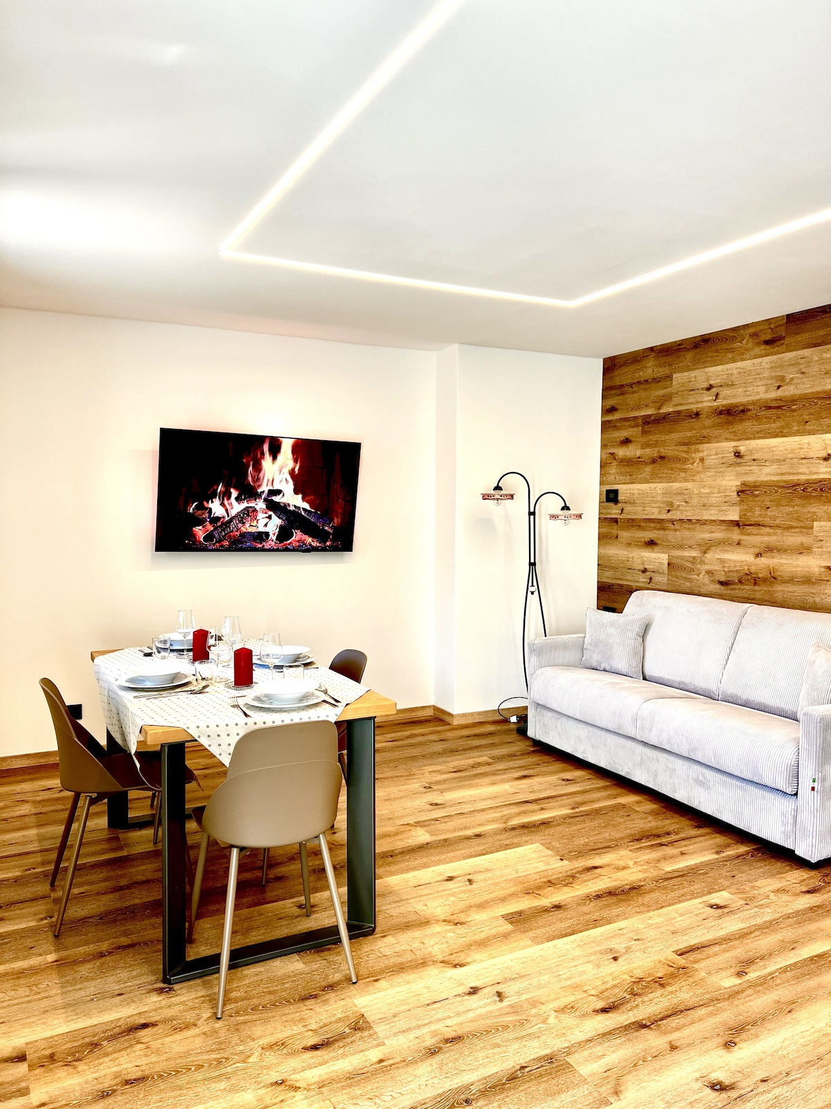 Ag bun bhealach Belvedere (60m), Árasán I Larici, árasán athchóirithe agus compordach le leagan amach iontach do 4 -6 dhuine - seomra suí le leaba thoilg, seomra bia, cistin, dhá sheomra leapa agus dhá sheomra folctha. Tá an siopa 100m ón bhfoirgneamh. Cistin nua - aimseartha. Radharc iontach ó fhuinneog an tseomra suí agus ón mbalcóin. Tá 1 leaba dhúbailte sa seomra leapa, an 2ú leaba bhuinc agus leaba shingil amháin. Tuáillí agus línéadach leapa ar tháille bhreise - 15 euro in aghaidh an duine.