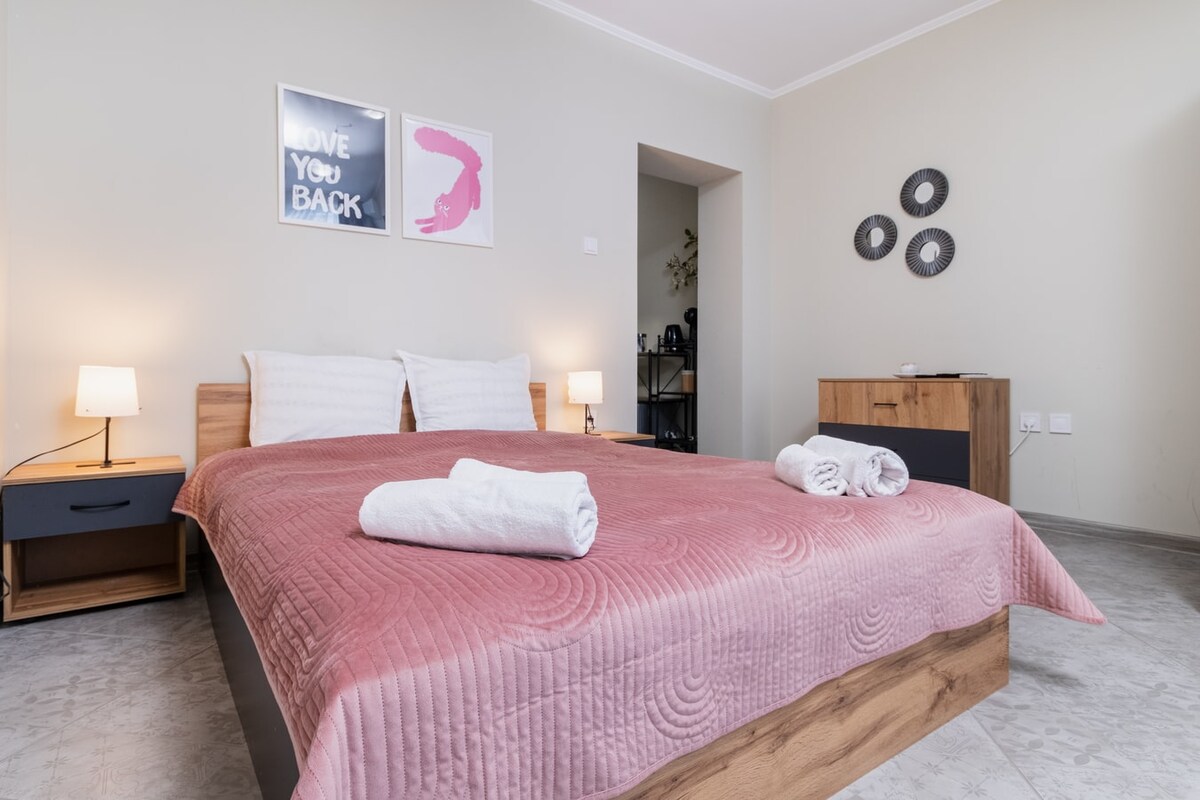 Fáilte chuig do thearmann gleoite Plovdiv! Tá seomra leapa suaimhneach san árasán galánta seo, áit a dtugann línéadach tí pluaise agus dathanna teo cuireadh do chodladh a athnuachan. Téigh isteach ar an ardán teolaí, foirfe chun caife maidine nó manglaim tráthnóna a bhlaiseadh. Neadaithe i gcroílár Plovdiv, geallann an ósais shuaimhneach seo fanacht dodhearmadta!