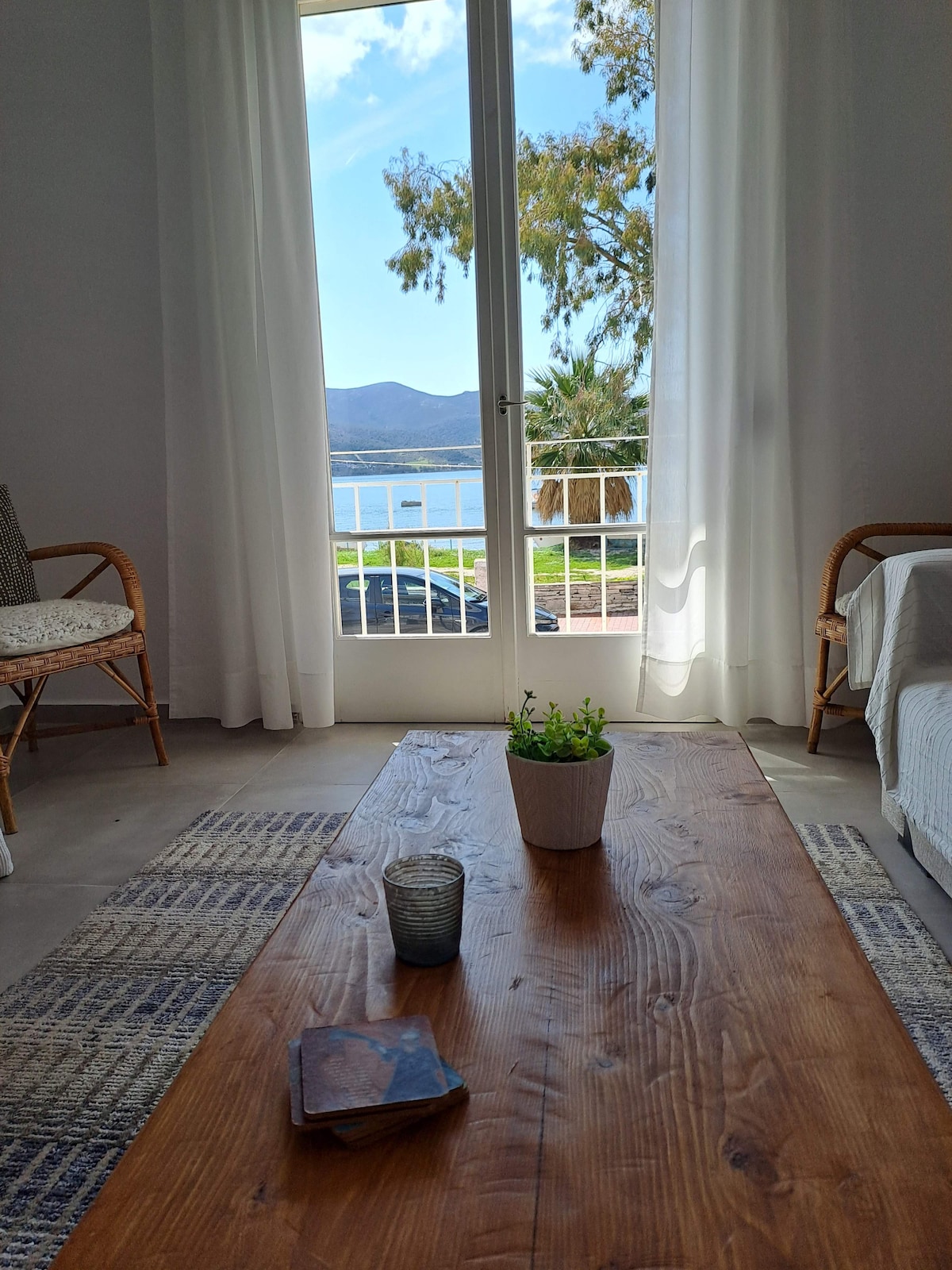 Beach Walk Marmari - Evia Island apartment with 2 large rooms including an open kitchen, a total of 60 sqm. The apartment has 1 queen bed and 2 sofa beds, a dining area for up to 4 people and a working space. Each room has a french balcony with full sea view. The apartment has 2 A.C. units. The kitchen is fully equipped. Only one hour by ferry from the port of Rafina and Athens airport. You have fantastic beaches as well as tavernas, supermarkets, cafe's and bars right at your doorstep.
