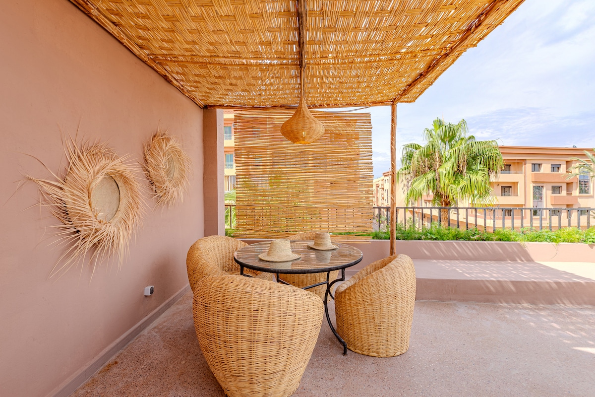 Notre Riad est une promesse d'évasion. Imaginez vos matinées bercées par le chant des oiseaux dans le patio et vos soirées sur la terrasse surplombant la ville rouge. Un mélange raffiné de zelliges traditionnels et de confort contemporain. Un salon de lecture pour s'évader, des chambres élégantes pour se ressourcer. Un patio rafraîchissant, pour le café du matin et un rooftop pour savourer le coucher du soleil. Hospitalité marocaine et confort absolu : votre parenthèse enchantée commence ici.
