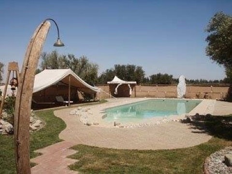 Retirez-vous de l'agitation des rues de Marrakech dans votre logement sous une tente caïdale hors du temps. Elle se situe au sein d'une propriété de 10 000 m2 avec sa villa. Profitez de la tente de 40 m2 et de son jardin de 200 m2 clos de murs en pisé. Juste à côté, vous accédez à la piscine et son espace en exclusivité, ce qui est très rare à Marrakech !!
