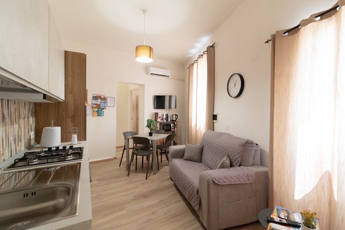 Árasán uathúil galánta, aird ar mhionsonraí, athchóirithe go hiomlán agus feistithe le gach compord. Tá ardán álainn lánléargais san árasán, le radharc farraige atá feistithe le cistin, limistéar grianiam, cithfholcadán lasmuigh, áit ar féidir leat taitneamh a bhaint as tréimhsí scíthe i suaimhneas iomlán. Suite 50 méadar ó lár stairiúil Marsala agus 100 méadar ón bhfarraige. Páirceáil sráide íoctha nó saor in aisce in aice láimhe.