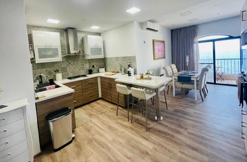Árasán athchóirithe ar imeall na farraige i lár bríomhar Marsalforn. Le cistin úrnua, 2 sheomra folctha (ensuite amháin)agus 3 sheomra leapa (2 leaba dhúbailte agus leaba thoilg dhúbailte amháin} ag breathnú amach ar an mbá, gar do shiopaí grósaera agus do stadanna bus, le bialanna nach bhfuil ach caith cloch ar shiúl.. Oiriúnach do suas le 6 aoi. Clúdaíonn bunphraghas (árasán iomlán) beirt. Gearrtar € 5.00 in aghaidh an duine in aghaidh na hoíche ar aíonna breise. Tá Wi fi agus aerchóiriú san áireamh.