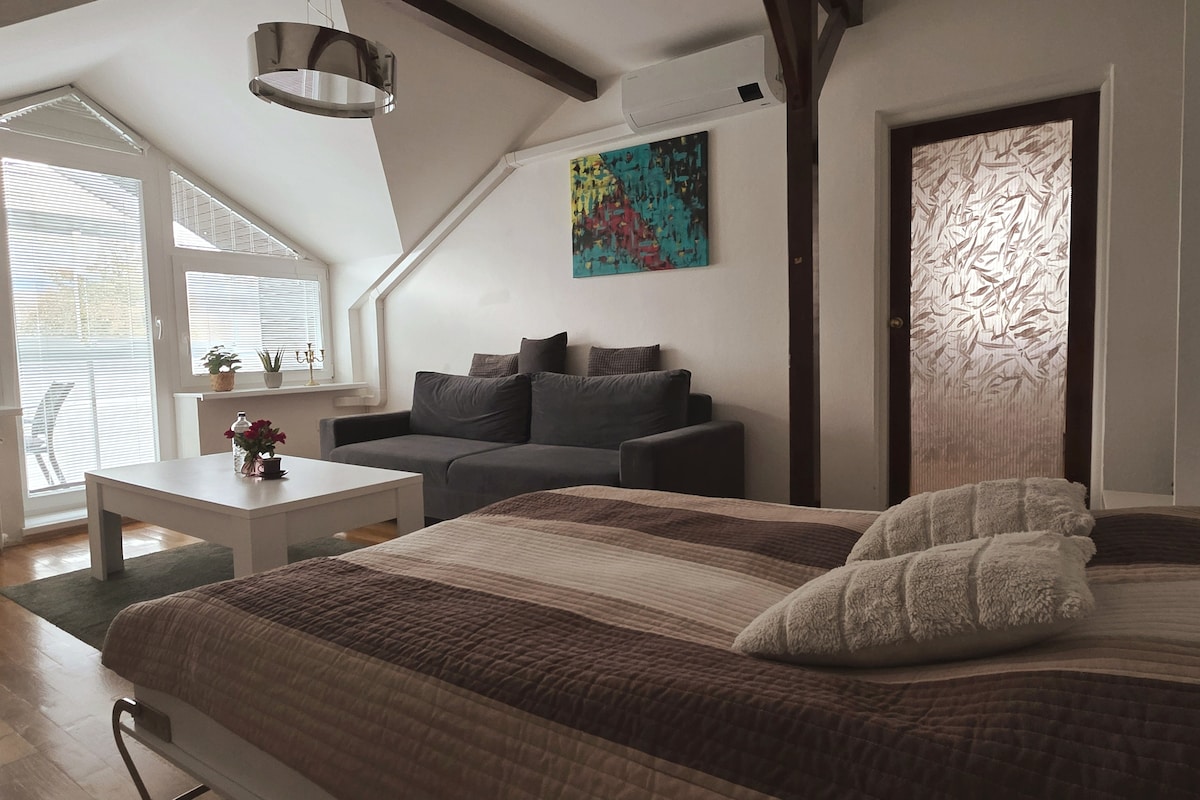 Pozývam Vás do moderného 1-izbového apartmánu, ktorý sa nachádza len 9 minút chôdze od hlavného námestia v Martine. Kompletne zariadený, s vybavenou kuchyňou, základnými potrebami na varenie aj pranie. Dvojlôžková posteľ pre váš komfortný spánok, smart TV a WIFI. Loggia s výhľadom na Malú Fatru. Bezplatné parkovanie priamo pred bytovým domom a celé centrum mesta dostupné v pešej vzialenosti. Byt je ideálny pre jednotlivcov, páry alebo biznis cestujúcich, ktorí hľadajú bývanie v Turci.