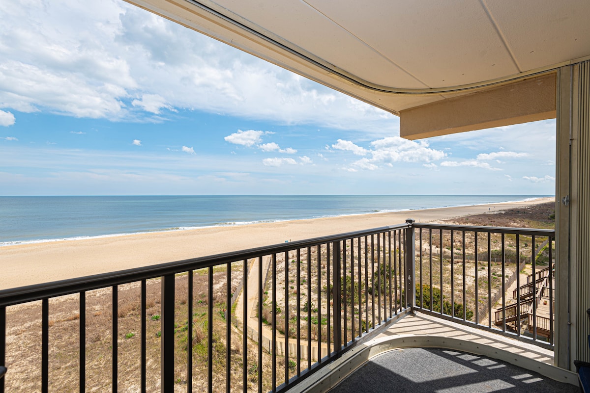 Árasán iontach cois trá le radharc díreach ar an aigéan! Do theach saoire ar shiúl ón mbaile! Gach rud atá uait díreach AR AN trá. Gach línéadach tí, soláthairtí agus cistin ina bhfuil stoc maith! Teilifís nua 65"w/4K saor in aisce Netflix curtha ar fáil! Maisiúchán nua - aimseartha suaimhneach i gcroílár OC! An bhfuil tú cosúil le dul amach? Bain sult as achar siúil go Seacrets, Mackey's, agus Fager's Island, Subway, Candy Kitchen nó Dumsers 'Dairyland! Tuilleadh eachtraíochta? Siúl go minigolf, báid pontúin agus lóistíní scairdsciála ar cíos! Níl ach 4 nóiméad sa charr go dtí an clárchosán!!