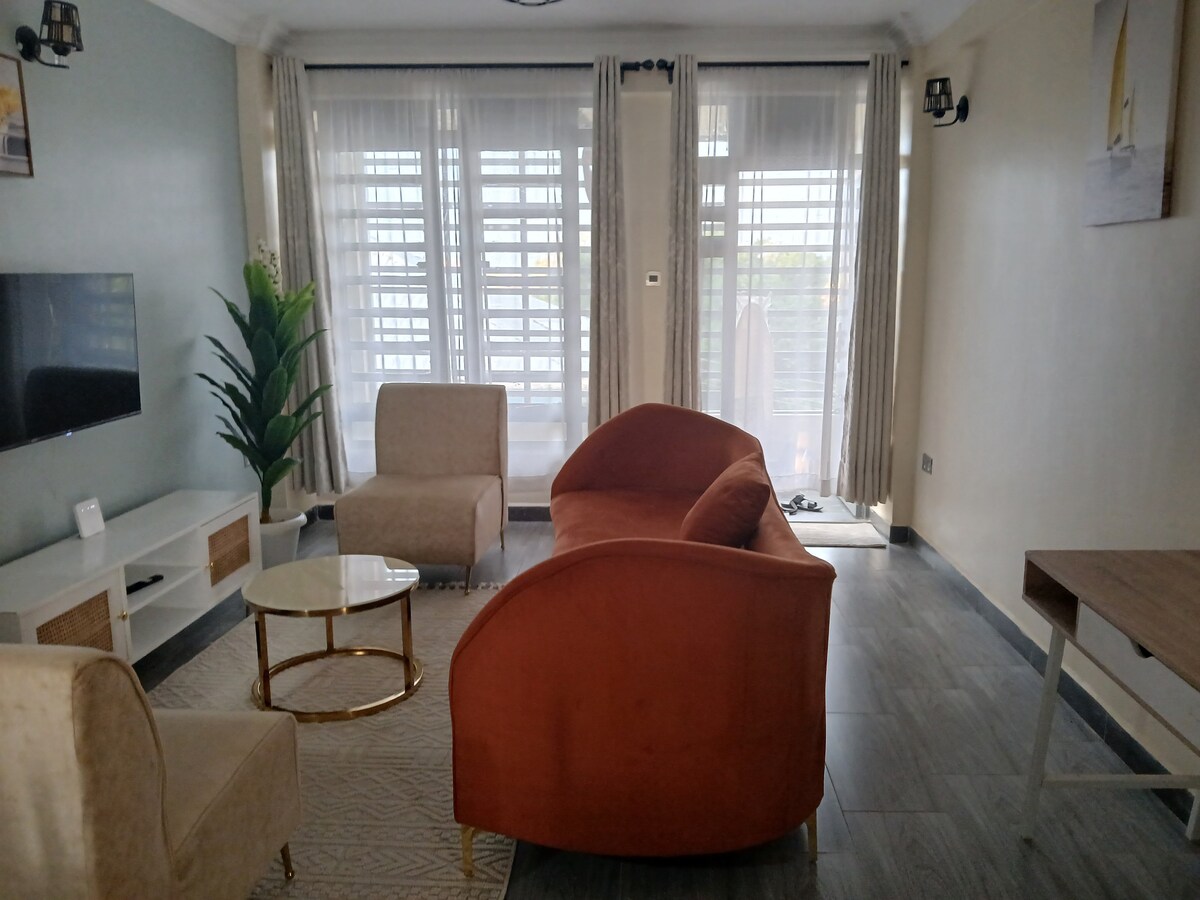 Fáilte go dtí ár BnB stylish ag Árasán Nati, do éalú foirfe! Feistithe go cúramach le maisiúchán nua - aimseartha agus leaba earraigh iontach compordach d'oícheanta suaimhneacha. Bain sult as Wi - Fi tapa Safaricom, lig do scíth i spás síochánta ina bhfuil radhairc áille, agus lig do scíth agus fios agat nach bhfuil tú ach nóiméad ón aerfort agus ón bpríomhbhóthar. Cibé acu an bhfuil tú anseo don obair nó don fóillíocht, tá ár suíomh thar a bheith inrochtana agus oiriúnach le haghaidh fanacht réidh gan strus.