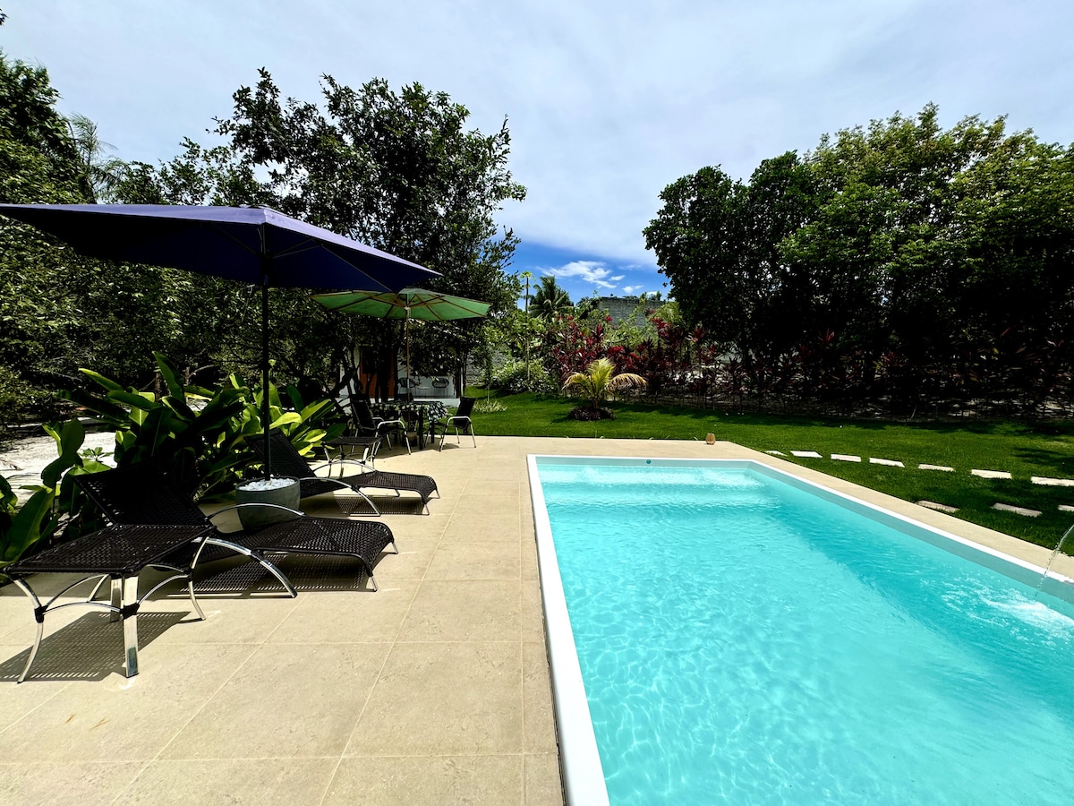 Maisiúchán tuathúil compordach. Tá linn snámha sa teach, tá sé aeráilte go maith agus tá sé tuathúil. Tá aerchóiriú sa phríomhsheomra leapa, leaba luascáin ar na balcóiní agus sa seomra suí, faiche, cithfholcadán sa ghairdín, gríoscán beárbaiciú, agus tá an réadmhaoin fálaithe go hiomlán, ionas gur féidir leat do pheata a thabhairt leat. Is suíomh den scoth é mar gheall ar an tost agus ar an suaimhneas... dóibh siúd atá ag lorg síochána, suaimhnis agus meas ar an dúlra. Tá an teach ar chúinne agus tá sé suite sa sráidbhaile, sa cheantar is fearr de Massarandupió, áit a bhfuil na siopaí grósaera, na bialanna agus an bácús suite.
