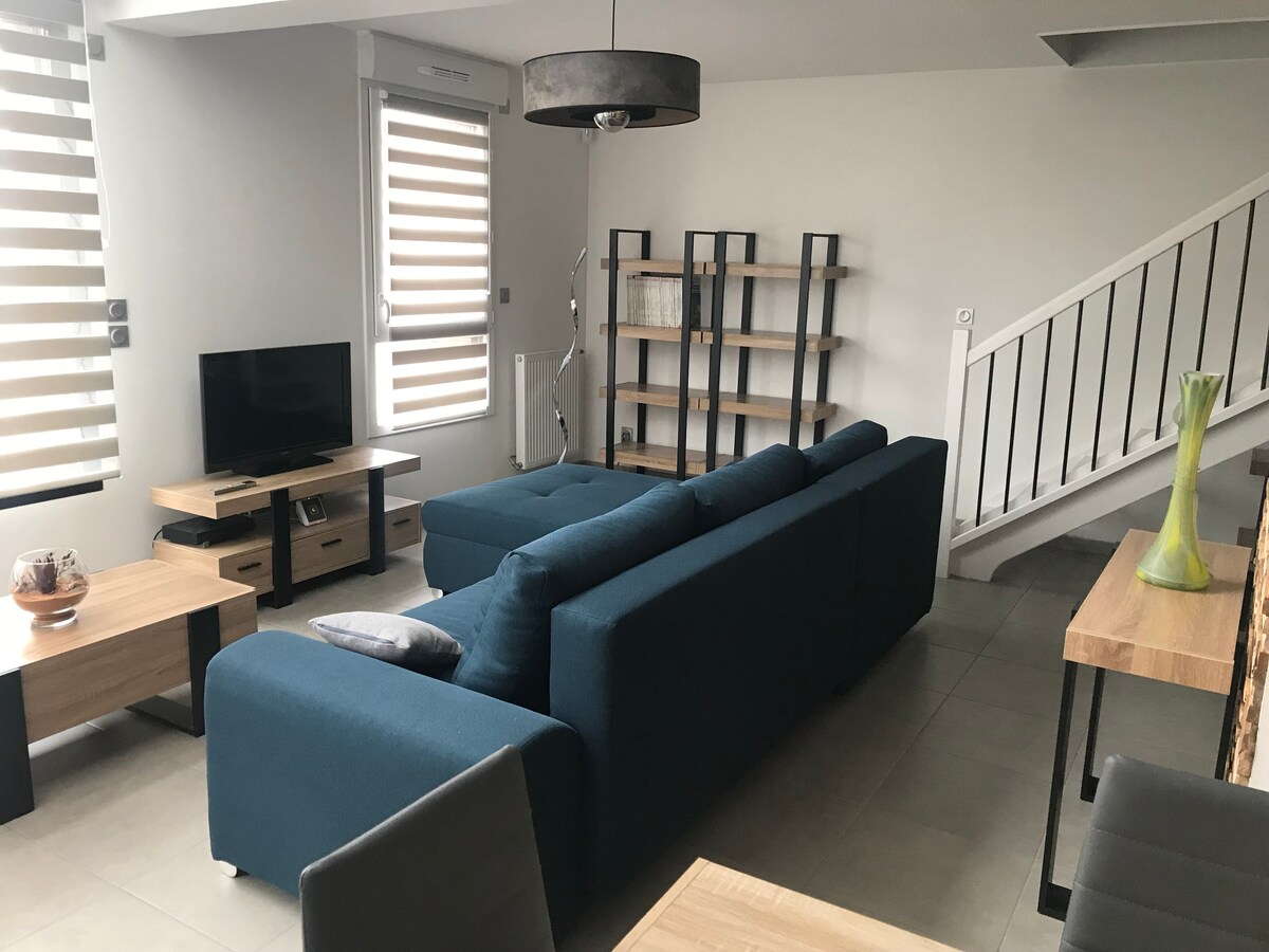 Lonnaithe in éicea - cheantar móréilimh La Cartoucherie in Toulouse, tá an t - árasán nua - aimseartha seo foirfe do lánúineacha, do theaghlaigh nó do ghairmithe. Bain sult as balcóin theolaí ina bhfuil áit aclaíochta, seomra suí geal ina bhfuil teilifíseán nasctha (Netflix), cistin phlean oscailte fheistithe, seomra leapa ina bhfuil leaba agus deasc dhúbailte, agus seomra folctha ina bhfuil doirteal dúbailte agus folcadán. Wi - Fi, páirceáil phríobháideach. 100 m ó Les Halles (25 bialann), in aice leis an stáisiún Zenith agus tram. Aerfort 10 nóiméad ar shiúl.
