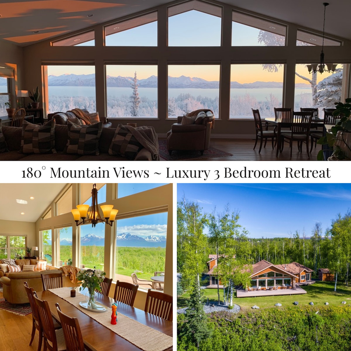 Fáilte go dtí an “SEALLA OS CIONN NA GCRANN” tearmann sómasach radhairc sléibhe in Wasilla, Alasca 🌲 Bain sult as suaimhneas agus suaimhneas atá suite os cionn na gcrann, le balla ollmhór d'fhuinneoga atá os comhair an Deiscirt. Faigh radharcanna iontacha ó *gach* seomra, síleálacha boghtaí, coincheap oscailte, agus na leapacha is compordaí in Alasca. RADHAIRC IONTACHA: Buaic Cheannródaí, Beanna Cúpla, Sliabhraon Chugach, Inlet. BUAICPHOINTÍ: + 3,000 troigh chearnach + Radharc Sléibhe 180° + Cistin Chócaire Ollmhór + 2 Theallach Gáis + Tobán Soaker + Cul - de - sac Ciúin