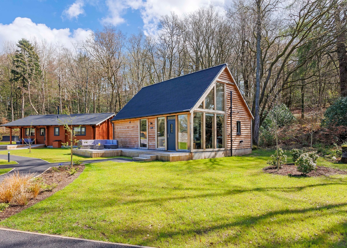 Cábán adhmaid gibíneach i gceantar tuaithe in aice le páirc náisiúnta