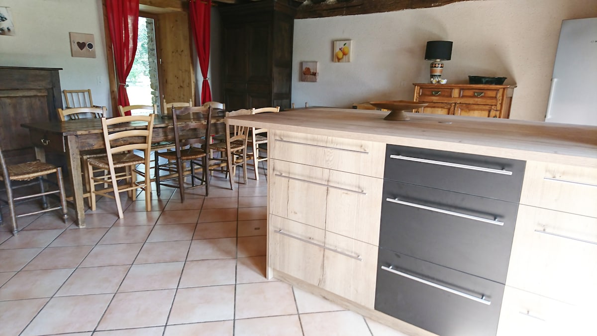 Teach de charachtar agus gnáth - thír Brocéliande (suite 10 m ón bhforaois) tógtha le clocha scealla dearga ag tús an chéid seo caite. Agus é athchóirithe go hiomlán agus is féidir leis freastal ar 4 dhuine, tá an chistin atá oscailte don seomra bia sa seomra suí ar an mbunurlár chomh maith leis an seomra folctha agus an 2 sheomra leapa thuas staighre. Cistin fheistithe (oigheann micreathonnach, cuisneoir, sorn ionduchtaithe) Seomra folctha le cithfholcadán, vanity. Téamh leictreach Dromchla 65m2