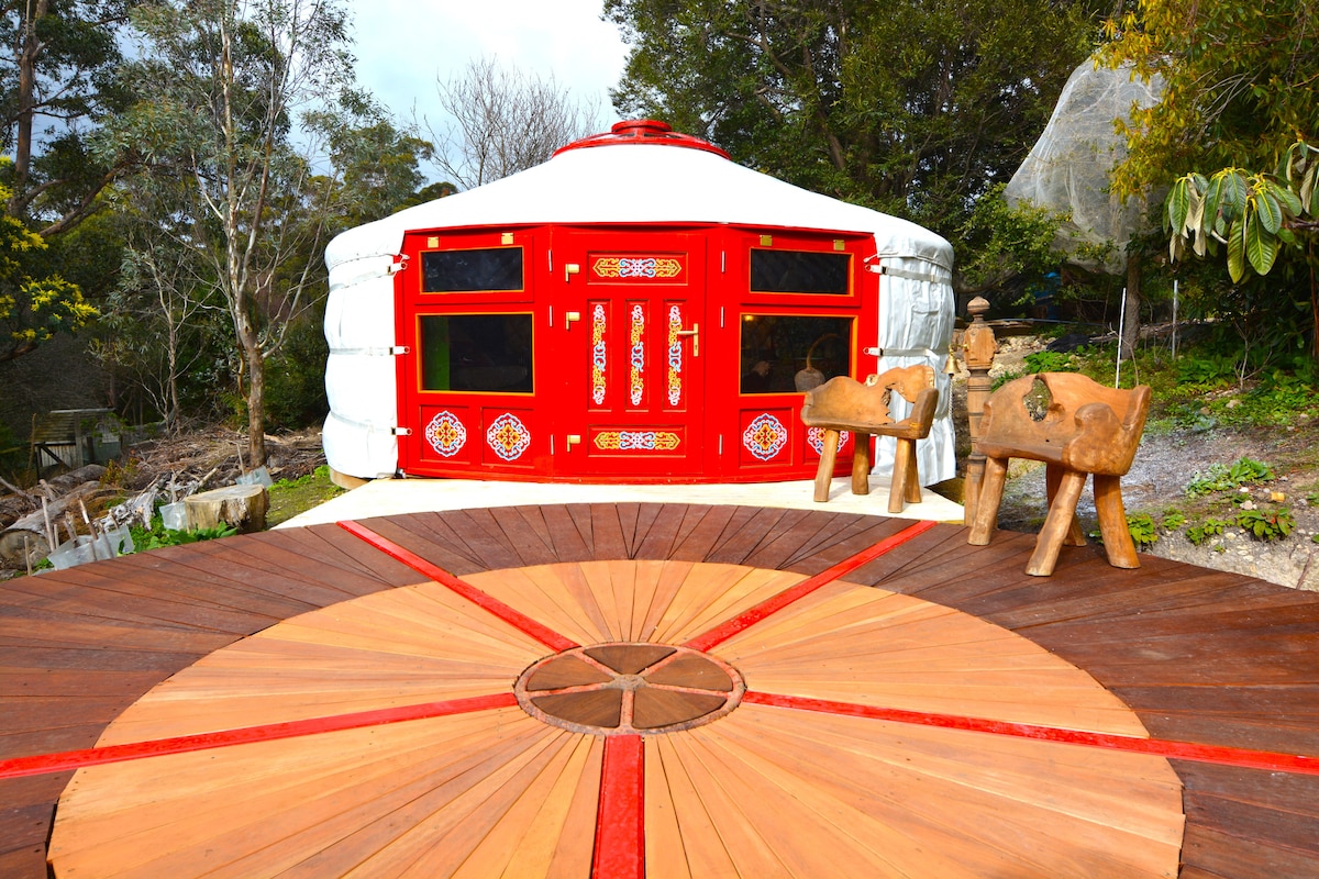 Huntingdon Tier Forest Retreat – atop a mountain in Tasmania's Southern Midlands. This luxurious, private & unimposing eco retreat is a place to escape, relax & reconnect. Soak in the woodfired hot tub & lounge by a warm fire or from your comfy bed, gaze through the treetops to the mountains beyond & observe local wildlife. Take a wander & enjoy a natural meditation cave just 30 metres below. Single night stays are welcomed, however guests often say they wish they had've stayed longer!