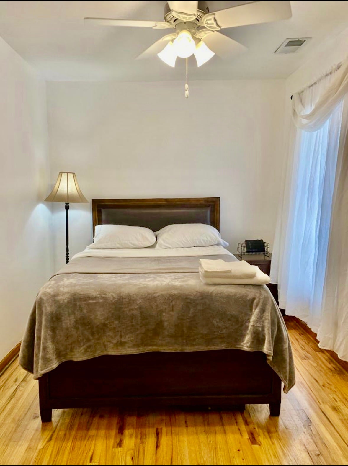 Tóg isteach draíocht seanré an árasáin seo a théann siar go 1908. Is tearmann galánta é an spás nua - chóirithe seo, ina bhfuil síleálacha 10 dtroithe, seoda ealaíne áitiúla, agus línéadach tí pluise. Tá áit shuaimhneach amuigh faoin aer ag fanacht leat tar éis lá gnóthach ag breathnú thart. Tá fáilte roimh pheataí ar bhonn cás ar chás (déan teagmháil leis an óstach). Tá an spás ina dhá sheomra leapa galánta, aonad aon seomra folctha amháin in aon teach stairiúil dhá aonad a tógadh i 1908. Nascann an t - árasán sonraí stairiúla le háiseanna nua - aimseartha amhail teas lárnach agus aer, miasniteoir agus meaisín níocháin agus rochtain ar thriomadóir. Is cloch é Teach Monroe ó Pháirc stairiúil na Darach agus níl sé ach trí bhloc ón Líne Ghorm CTA, rud a fhágann go bhfuil lár Chicago turas traenach 25 nóiméad ar shiúl. Tá saoráidí breise san árasán, mar shampla: • Teilifís chliste chun breathnú ar aon chuntas a d'fhéadfadh a bheith agat (Netflix, Hulu srl...) • Aerchóiriú Lárnach • Póirsítosaigh agus cúil chun taitneamh a bhaint as •Meaisín níocháin agus triomadóir ar an láthair Díreach ar an taobh thoir tá Páirc stairiúil na Darach, agus tá réimse nithe is díol spéise ann, mar shampla: • Zú Brookfield • Fondúireacht Ailtireachta Chicago • Músaem agus Áit Bhreithe Ernest Hemmingway • Teach agus Stiúideo Frank Lloyd Wright • Teampall Aontachta Frank Llyod Wright • Ardscoil Pháirc na Darach Tar éis na nithe is díol spéise áitiúla a ghlacadh, níl Chicago ach turas traenach ar shiúl, agus cuireann sé eispéiris den sórt sin ar fáil mar seo a leanas: • Uisceadán Shedd •Cruise Abhainn Ailtireachta •Skydeck Chicago • Cé an Chabhlaigh •The Field Museum • Réadlann John Hancock •Adler Planetarium • Institiúid Ealaíne Chicago •Músaem na hEolaíochta agus an Tionscail Beidh rochtain agat ar an aonad iomlán agus ar an íoslach ionas gur féidir leat an meaisín níocháin agus an triomadóir a úsáid. Tá paitió cúil againn freisin le bord siméin, paitió a shuíonn 6, agus gríoscán/caiteoir tobac. Tá fáilte romhat an cúlchlós a úsáid ag am ar bith le linn d'fhanachta. Tá cónaí orainn san aonad is fearr agus táimid ar fáil de réir mar is gá duit. É sin ráite, tá an - mheas againn ar do phríobháideacht agus ní bheimid ag seiceáil isteach leat go pearsanta mura n - iarrann tú é. Tá sé suite i gceantar Madison, ina bhfuil bialanna, tithe tábhairne agus búitíceanna uathúla. Is turas traenach 25 nóiméad ar shiúl é Downtown Chicago. Cuireann an ghrúdlann áitiúil ar fud na sráide beoracha blasta agus béilí cruthaitheacha ar fáil don teaghlach ar fad. Tá ceap páirceála againn atá suite taobh thiar dár bhfoirgneamh. Is féidir leat dhá charr a fheistiú ar do thaobhsa den cheap páirceála má tá siad páirceáilte i dteannta a chéile. Tá roinnt páirceála sráide ar fáil freisin. Táimid lonnaithe .4 mhíle ó thraein Líne Ghorm CTA - Stop Páirc na Foraoise. Tá sé thart ar siúlóid 6 - 10 nóiméad ón árasán. Is féidir leat Uber/Lyft a thabhairt isteach sa chathair freisin. Tá sé thart ar turas 15 - 25 nóiméad agus cosnaíonn sé idir $ 15 agus $ 25. Táimid suite thart ar mhíle ón Stáisiún Metra (Union Pacific West) agus Líne Ghlas CTA - Stad Pháirc na Darach. Is tolg banríona é an tríú leaba. Soláthraímid braillíní agus blaincéid don tolg codlata. Is féidir leat tobac a chaitheamh sa chúlchlós. Cuirtear luaithreadán ar fáil.