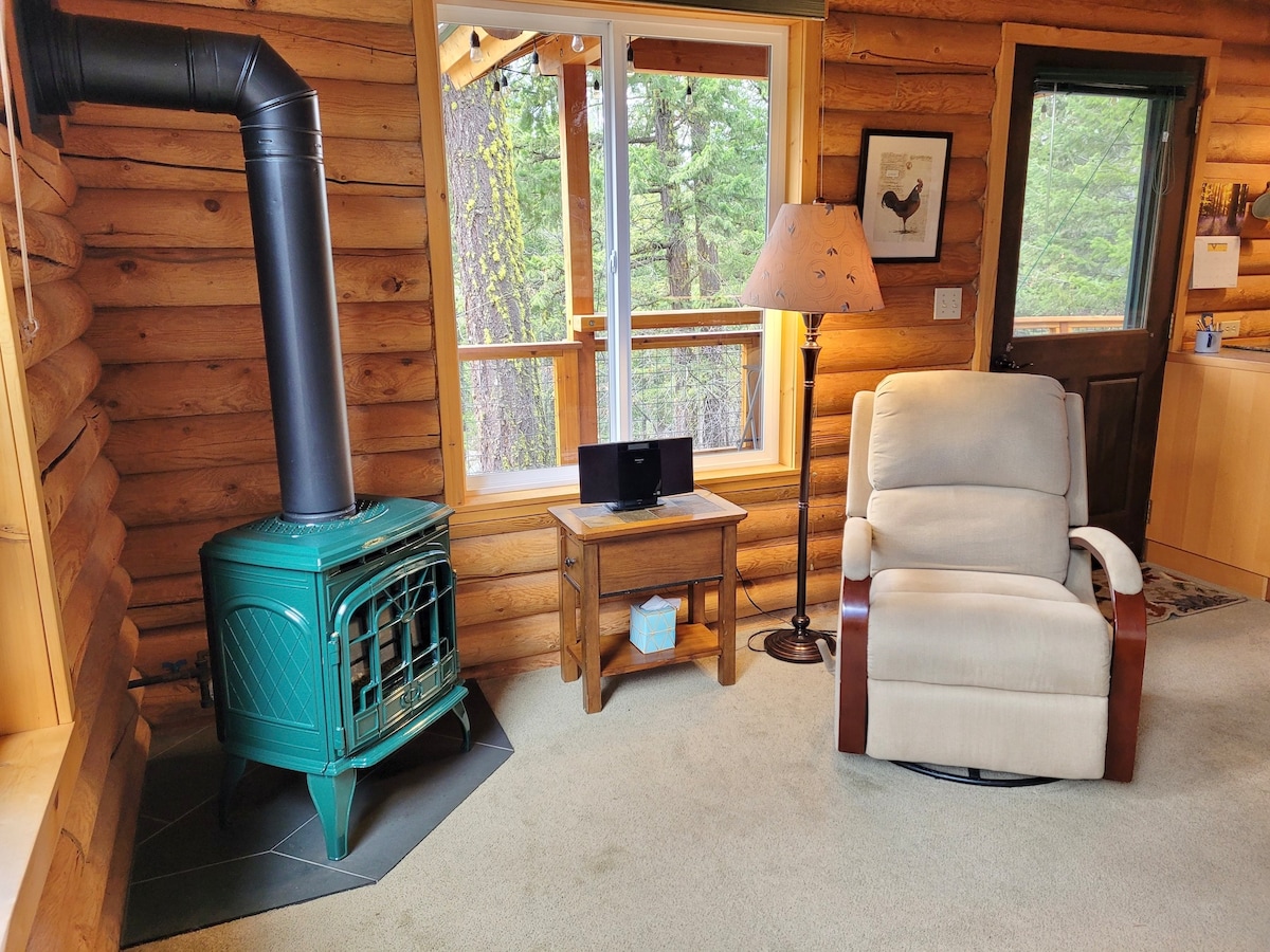 Tá ár gcábán logála aoibhinn foirfe do bhealach a dhéanamh i nGleann Methow. Táimid i ngarrán álainn creathach, siúl nóiméad amháin chuig Abhainn Methow, sabhna príobháideach, tobán te comhroinnte & linn snámha agus cosán MVSTA (siúlóid 1 -2 nóiméad/sciáil). Tá dhá sheomra leapa sa chábán + lochta codlata agus cistin iomlán.