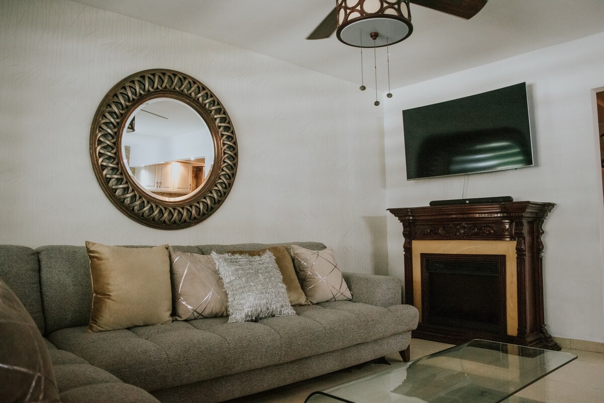 Samhlaigh áit chónaithe saoire iontach i gcroílár bhalla farraige Mazatlan, ag tairiscint tearmann sómasach compordach duit féin agus do do mhuintir. Tá dhá sheomra maisithe go hálainn sa teach cónaithe iontach seo, rud a chinntíonn spás príobháideach do gach aoi. Bain sult as saoire ghearr dhodhearmadta ag an teach saoire iontach seo ar an Mazatlan Malecon, áit a dtagann só agus compord le chéile chun cuimhní buana a chruthú. Ná caill!