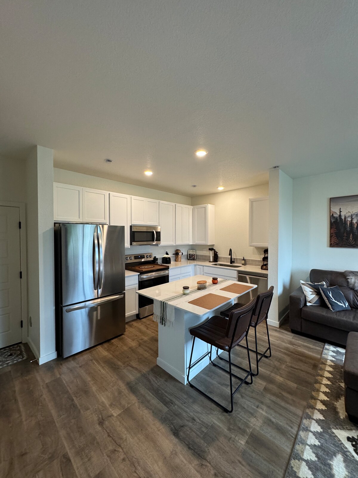 COVID - COMPLIANT BREISE SLÁINTITHE AGUS GLAN! Tá spás maireachtála stiúideo fairsing ina bhfuil seomra leapa teolaí dea - shoilsithe, áit chónaithe chompordach mhór agus seomra folctha príobháideach iomlán ag fanacht le mo chuid aíonna. Is féidir an garáiste a úsáid chun do rothair nó do sciáil a stóráil agus tá páirceáil ar fáil os comhair an tí le haghaidh feithiclí. Is radharc álainn é siúl amach an doras tosaigh ar Longs Peak agus ar na Sléibhte Creagacha. Tá dhá chat "Albanach Fold" agam a bhfuil cónaí orthu i mo spás, mar sin, má tá ailléirgí cat agat b'fhéidir nach é seo an áit duitse.