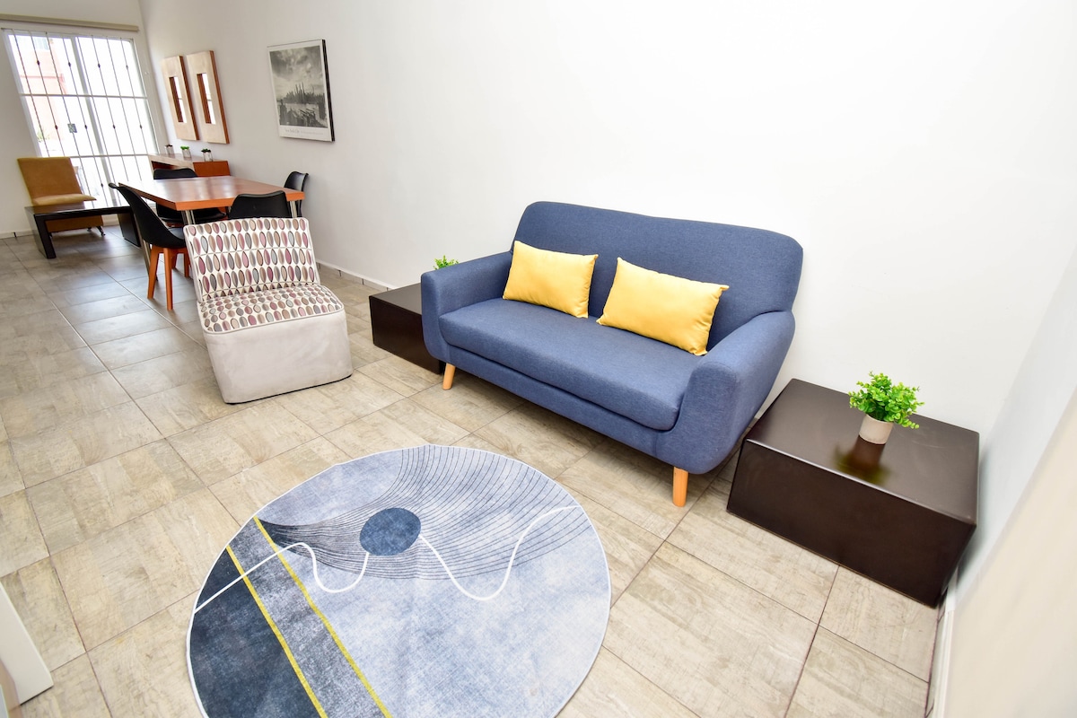 Foscadh teolaí atá oiriúnach dóibh siúd atá ag lorg áit le do scíth a ligean, taitneamh a bhaint as nó oibriú ó chian. Le garáiste mór, cuireann an teach 2 sheomra leapa seo gairdín ar fáil ina bhfuil beárbaiciú, atá oiriúnach do bhéilí lasmuigh. Ligeann an chistin lánfheistithe duit béilí blasta a ullmhú. Cumas suas le 6, iontach do theaghlaigh, do chairde, nó do chuideachta. Díreach 5 nóiméad. ón Limistéar Tráchtála is fearr de Boca del Río y Mar, rud a fhágann gur áit fhoirfe é chun iniúchadh a dhéanamh ar an gcathair agus taitneamh a bhaint as an trá