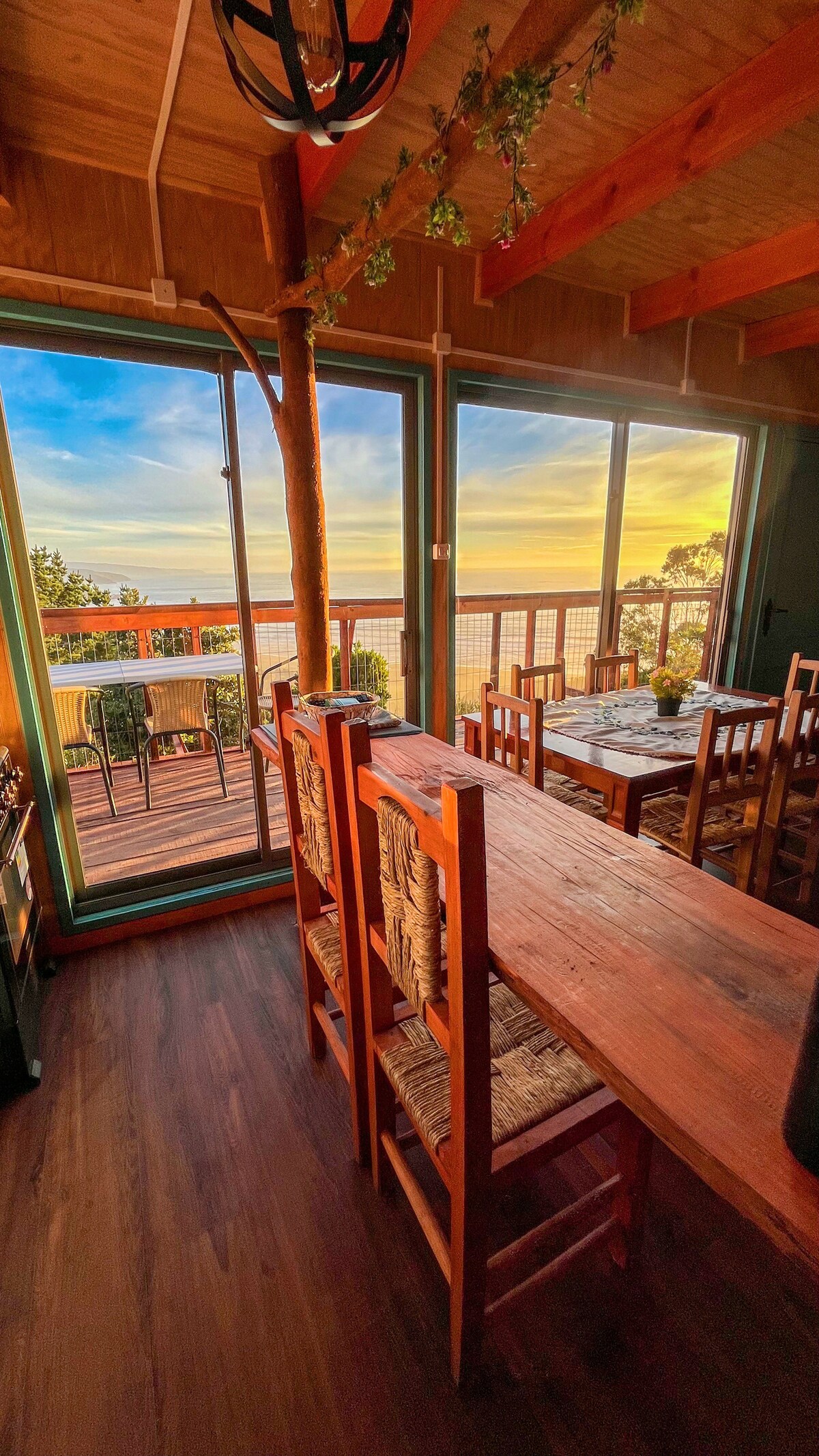 Má tá tú ag iarraidh roinnt ama a chaitheamh agus an dúlra thart timpeall ort, is é seo an áit duitse. Má tá foighne ort, b'fhéidir go bhfeicfeá míolta móra, orcanna, nó deilfeanna! Teach compordach teaghlaigh, ag breathnú amach ar an aigéan ar thaobh amháin agus ar fhoraois Valdivia ar an taobh eile. Tobán te ar fáil don aoi, réidh i gcónaí! Máistirsheomra leapa le seomra folctha en - suite. Tá an dara agus an tríú seomra leapa mar an gcéanna, le dhá leaba shingil agus seomra folctha eile. Meaisín níocháin. STARLINK ! Cistin iomlán Tiomáint 5 nóiméad go dtí an trá. 45 nóiméad ó lár bhaile Valdivia