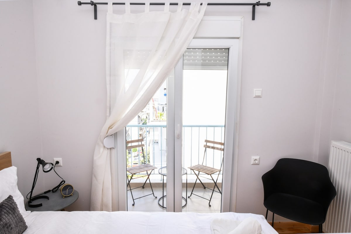 Central, fully renovated apartment of 6th floor. It is located in the heart of the city, very close to all the hotspots, facilities and public services of the city. Also, very close to the apartment there are restaurants, coffee shops, super markets, etc. There is no parking place in the property, but you can park for free on the roads around the building. The closest private parking place (with charge) is situated at a distance of 100m (PARKING ΟΥΗΛ A.E.) at Veli & Anthimou Gazi str.