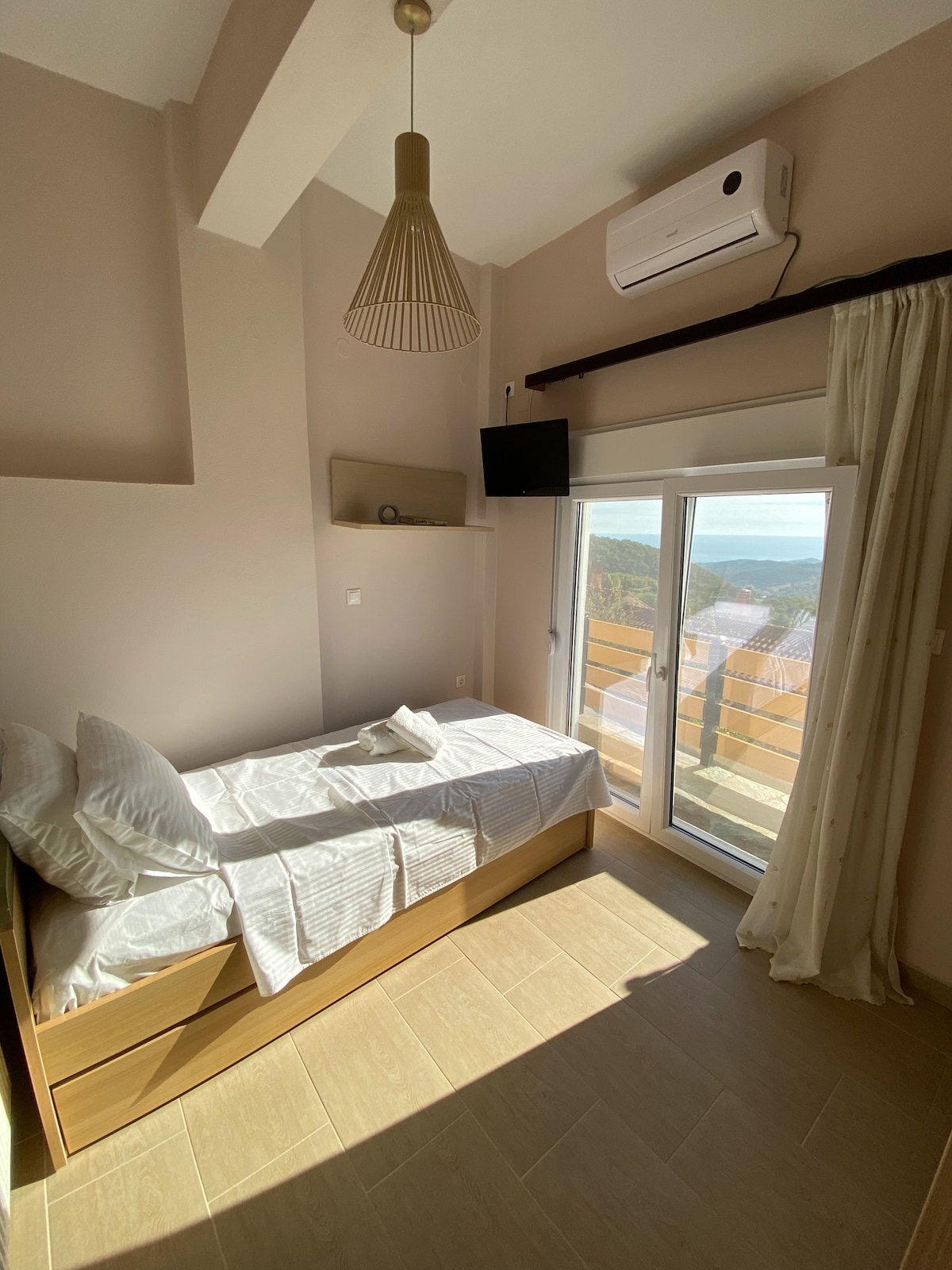 Is árasán nua é seo, atá dírithe ar chompord a chuairteoirí, agus atá oiriúnach do lánúineacha agus do ghairmithe. Tá sé suite i lár na cathrach, ag breathnú ar an bhfarraige agus ar Pilia. Níl sé ach 1 nóiméad ón trá, 3 nóiméad ó ché an chalafoirt agus 2 nóiméad ó Ermou.