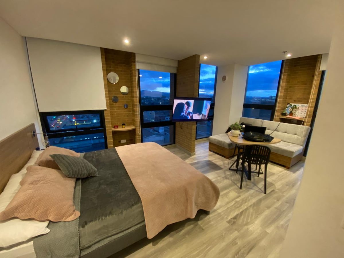 Stiúideo gleoite athchóirithe le déanaí. Tá an áit seo suite go straitéiseach: gar do mhargaí, músaeim, San Martin Mall, Monserrate, La Candelaria, La Plaza del Perseverancia, la Calle Bonita, National Park International Center (Crios Airgeadais), agus bialanna, beáir agus gníomhaíochtaí cultúrtha gan áireamh a thabharfaidh do chuairt ar an gcathair, eispéireas speisialta. Tá giomnáisiam, coworking, limistéar linn snámha, agus ardán beárbaiciú ar an urlár uachtair 360 View san fhoirgneamh.
