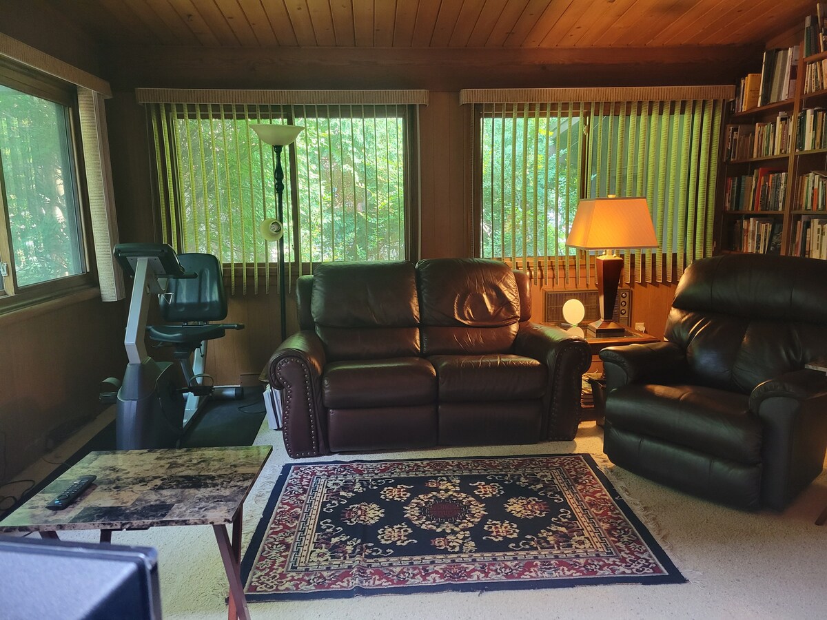 Lig do scíth agus bain sult as i dteach álainn álainn atá suite go háisiúil i gcomharsanacht chiúin choillteach in Appleton. Tá na gnéithe go léir ann a bhaineann le bheith ar do shuaimhneas. Beagnach 3,000 troigh cearnach. Tá rochtain ag aíonna ar gach áit suí, cistin nua - aimseartha, teallach mason iomlán, síleálacha boghtaí, deic mhór agus tobán te. Bain sult as an gcúlchlós le deic mhór, tobán te 7 nduine agus poll dóiteáin lasmuigh. Cúig nóiméad. ó Aerfort, Downtown, 25 min. go Lambeau agus 20 min. go EAA. Tá caife agus bricfeasta san áireamh.