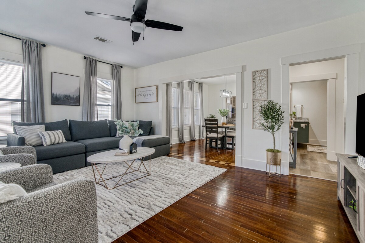 Fáilte chuig ár dteach 3 sheomra leapa atá suite go lárnach, geal, fairsing i lár an chéid. Fad siúil go Coláiste Hendrix, díreach nóiméad go dtí UCA agus Ospidéal Réigiúnach Conway. In aice le Downtown Conway, bialanna agus siopaí. Tar ar do shuaimhneas inár dteach atá oiriúnach do theaghlaigh, 3 sheomra leapa. Go leor spáis le scaipeadh amach agus le taitneamh a bhaint as d'fhanacht! Codlaíonn sé idir 6 agus 8 nduine. Is é seo an áit fhoirfe do theaghlaigh, do lánúineacha, nó do ghrúpa cairde a bhfuil oíche amuigh acu.