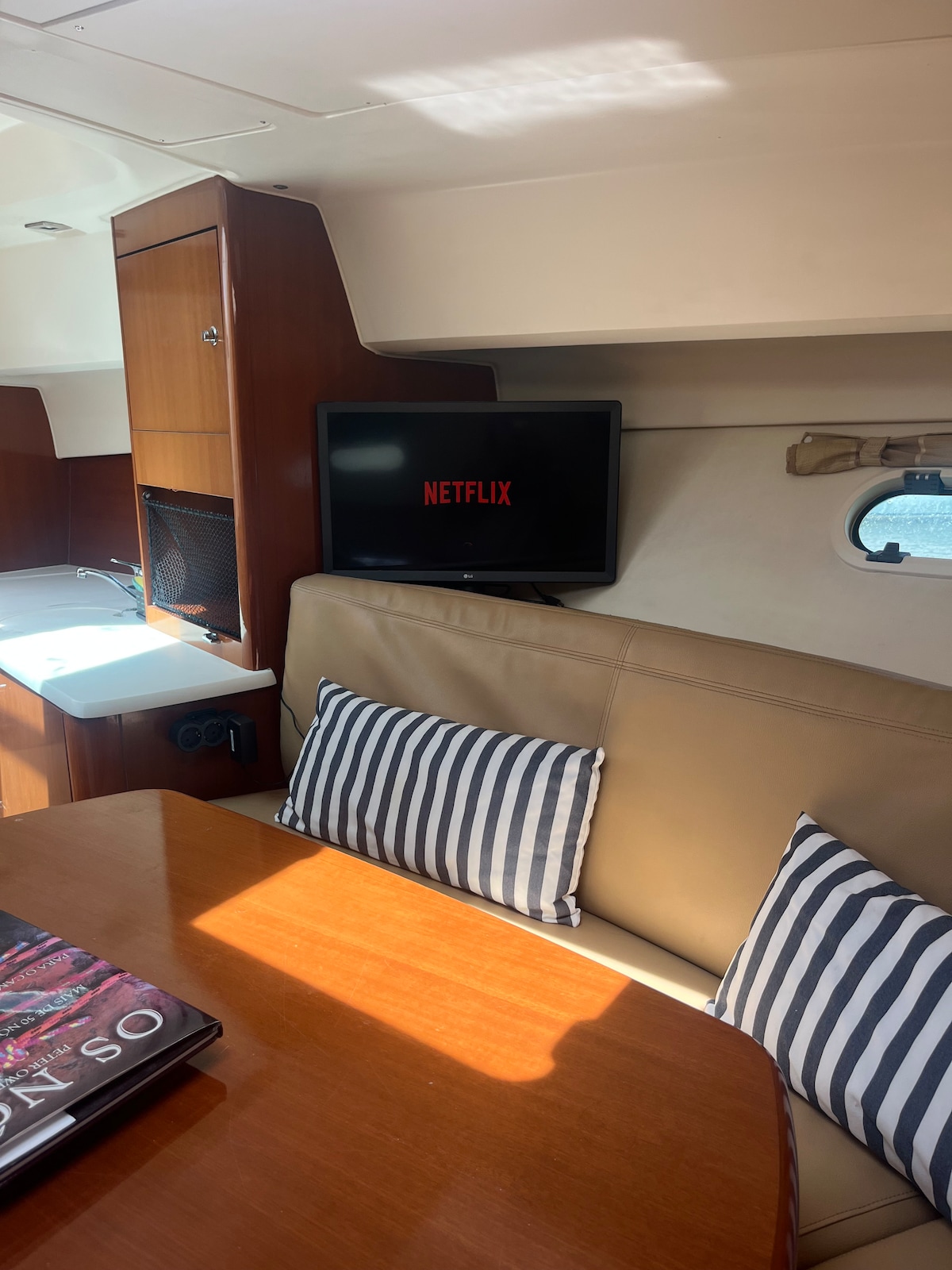 Is “Westerly Typhoon 37” eisiach é Great Expectations a tógadh i Sasana i 1991. Cruthaíonn an taobh istigh adhmaid atmaisféar teolaí a chuireann teach tábhairne Béarla i gcuimhne. Cuirfidh an caighdeán tógála, na hábhair agus an dearadh ar do shuaimhneas thú.. Le haghaidh do shiamsaíochta (nó le bheith ag obair) tá Wi - Fi príobháideach agat (nach roinntear le duine ar bith eile) agus teilifíseán cliste ( le Netflix) ar bord. Tá córas raidió ceoil ( le nasc usb) ann le haghaidh siamsaíochta ar bord. TÁ COSC IOMLÁN AR CHÓISIRÍ AGUS AR CHAITHEAMH TOBAC AR AN MBÁD!