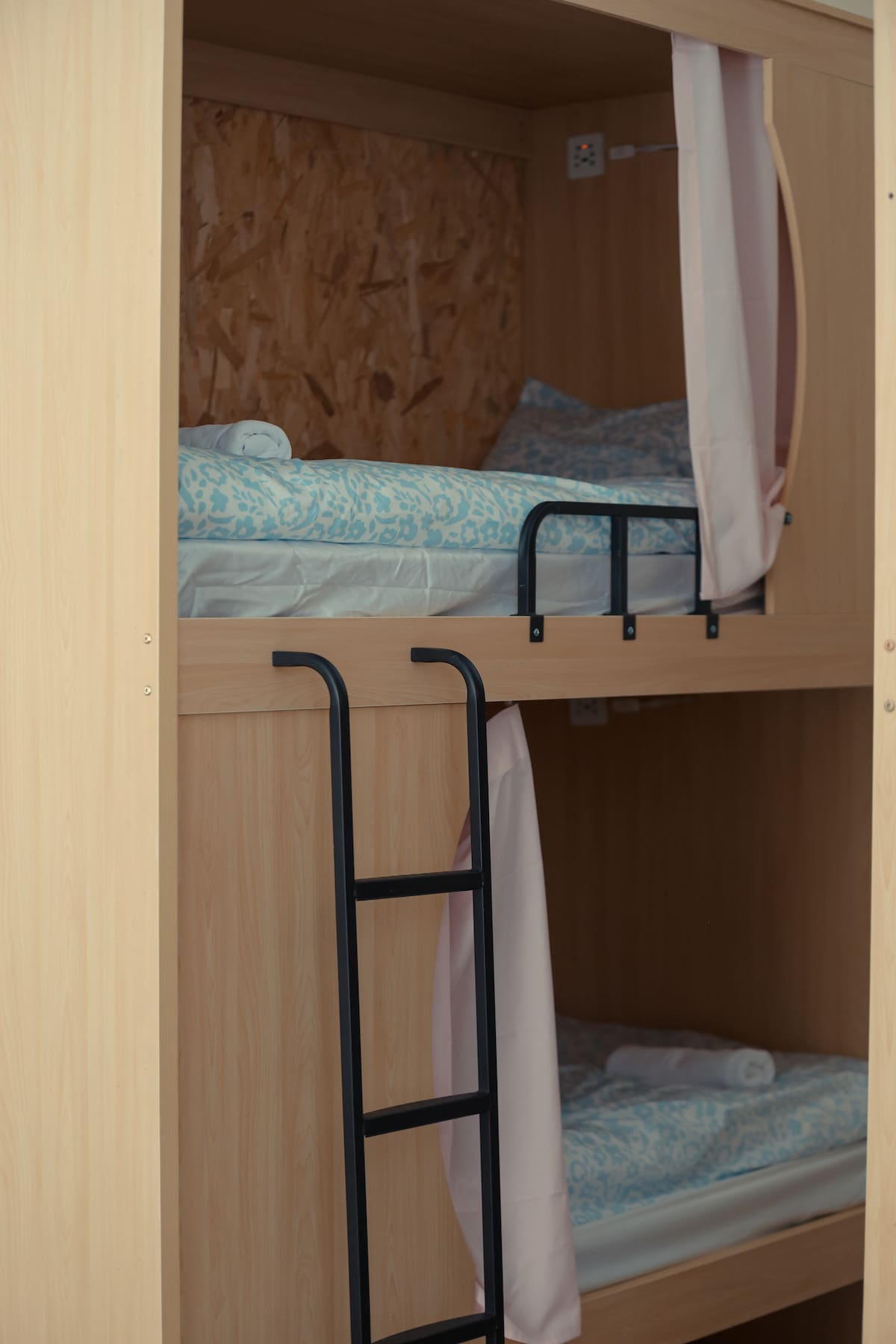 Leaba i seomra leapa fairsing le solas nádúrtha. Literas 2 mhéadar ar fhad. Tá solas, plocóid, soicéad USB agus seilf féin ag gach leaba. Tá cuirtín stíle "blackout" ag gach bunkie le haghaidh príobháideachta breise, chomh maith le tarraiceán mór amháin faoin leaba ar féidir glas fraincín a chur air. (In - athnuaite ag an bhfáiltiú). Tá an méid seo a leanas acu: A/C Téamh Wi - FI ARDLUAIS Seomraí folctha agus cithfholcadáin chomhroinnte sa halla Blaincéid Braillíní Tuáillí (breise le tuáillí breise agus ar iarratas) Raca éadaigh