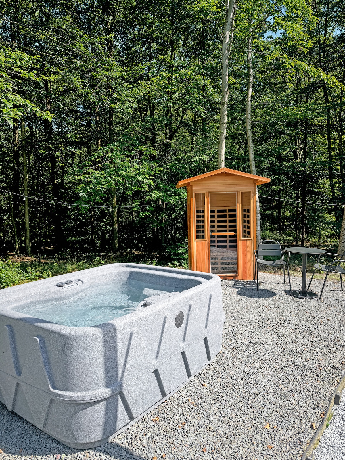 Agus é suite i gcroiméal draíochtúil, is tearmann suaimhneach é an cábán nuathógtha seo ina dtagann an dúlra agus an compord le chéile. Scaoil le chéile sa tobán te faoi na réaltaí, lig do scíth sa sabhna adhmaid, nó bain sult as tráthnóna spraíúil sa seomra cluiche. Lig d'fhuaimeanna suaimhneacha an chreagáin tú a chodladh agus tú ag glacadh áilleacht an taobh amuigh ó gach fuinneog. Déan iniúchadh ar chosáin in aice láimhe, ar bhailte gleoite, agus ar shaoire rúnda. Oiriúnach do pheataí, foirfe do lánúineacha atá ag lorg tearmainn draíochta i ngach séasúr.
