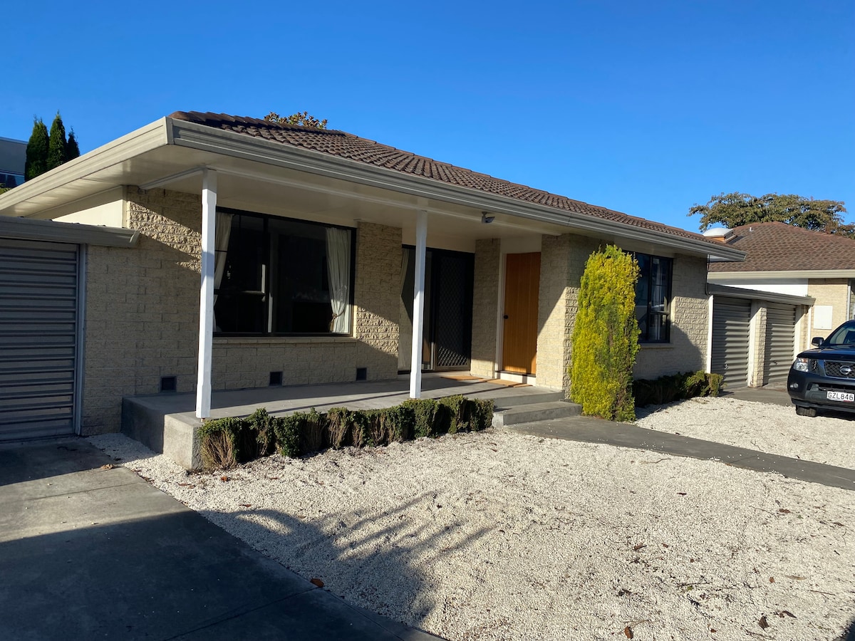 Garden outlook, self-cater, fridge, microwave, benchtop oven, jug, toaster, queen sized bed, couch (becomes sofa bed mostly used by children or small adults. )There is an additional charge of $20 for the 3rd person. Close to Hagley Park and Merivale Mall, Restaurants, bus route to CBD. There is off street parking. Use of small backyard with table and chairs. Two mountain bikes are available for loan with advance notice.