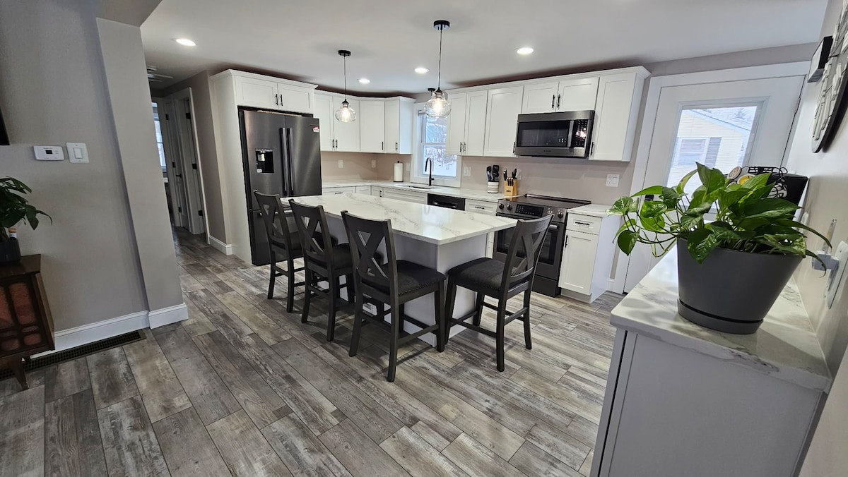 Samhlaigh an tsíocháin a bhaineann le balla gloine a fheiceáil agus suaimhneas an locha a fheiceáil agus fios a bheith agat 10 nóiméad ar shiúl ná siopadóireacht, bialanna agus díreach faoi rud ar bith a d'fhéadfá a iarraidh chun freastal ar do riachtanais. 10 nóiméad ón mhórbhealach, 35 nóiméad ó Bhostún, 35 nóiméad ón aigéan agus 1 1/2 uair an chloig ó na sléibhte. Táimid mar phointe lárnach d'aon rud atá á lorg agat. Teach locha nua - athchóirithe ina bhfuil na saoráidí go léir cothrom le dáta. Tar isteach agus bain sult as oíche nó seachtain.