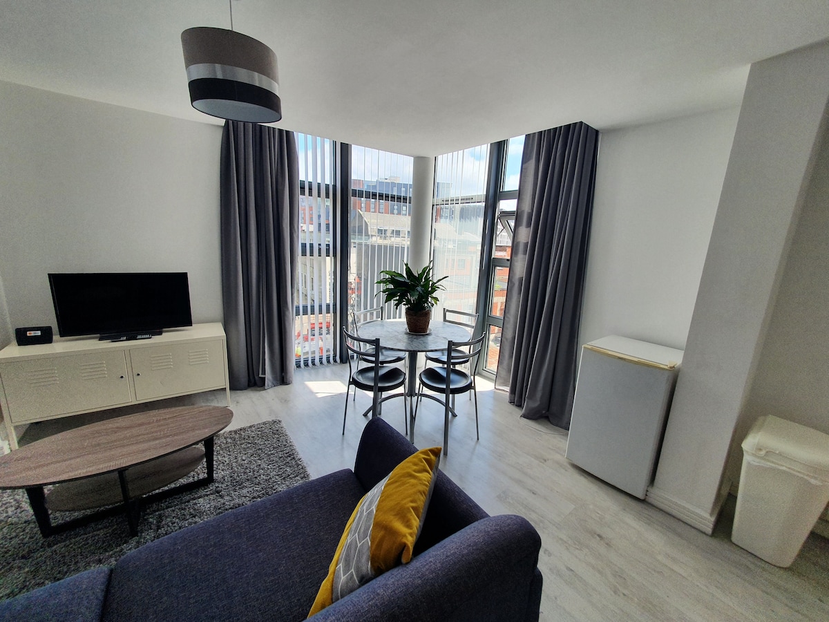 Is é an bloc lóistín seirbhísithe úrnua seo i gcroílár lár na cathrach an áit is fearr do d'fhanacht foirfe inár gcathair iontach. Suite ar Shráid Renshaw tá sé cúpla nóiméad siúil ón bpríomhstáisiún líne traenach Lime Street agus gan níos mó ná 10 nóiméad go dtí gach radharc agus díol spéise laistigh de lár na cathrach. Le troscán agus gléasta i dtoin agus i ndathanna neodracha, tabharfaidh na hárasáin seo suaimhneas agus suaimhneas do d'fhanacht inár gcathair bheoga.