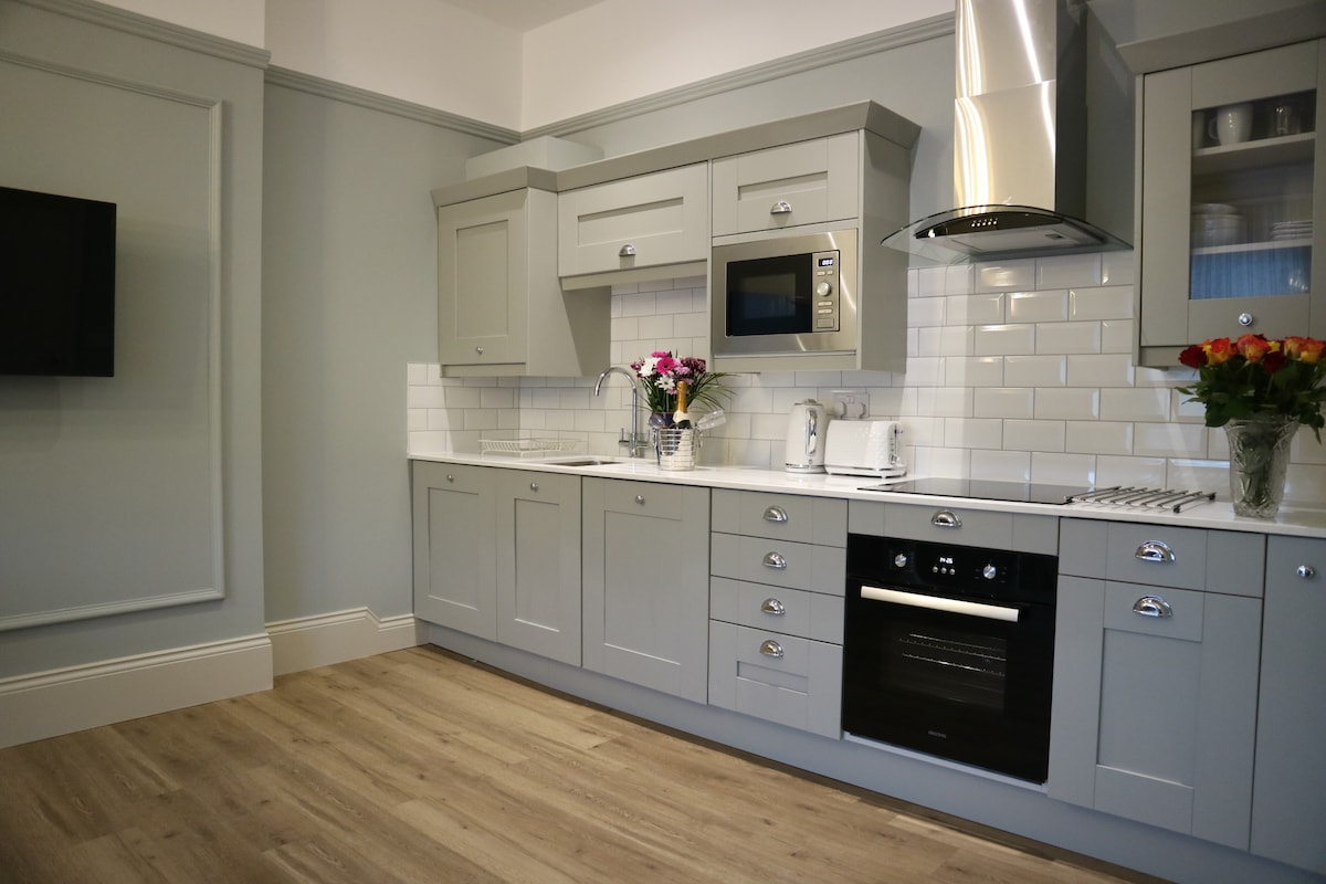 Saoire ghearr shuaimhneach uathúil shuaimhneach. Suite laistigh de Limistéar Caomhantais Oxton, agus gan ach cúpla nóiméad siúil ar shiúl ó Shráidbhaile Oxton féin, áit a bhfaighidh tú Beáir, Bialanna, Caiféanna agus Bealaí Tógála iomadúla. Tá an t - árasán suite ag bun tí mhóir Victeoiriach agus rinneadh é a athchóiriú i stíl tí saoire cosmopolitan cois farraige. Tá go leor páirceála easbhóthair ann. Níl i Lár Chathair Learphoill ach turas gearr tiomána nó bus ar shiúl le go leor nithe is díol spéise do thurasóirí.