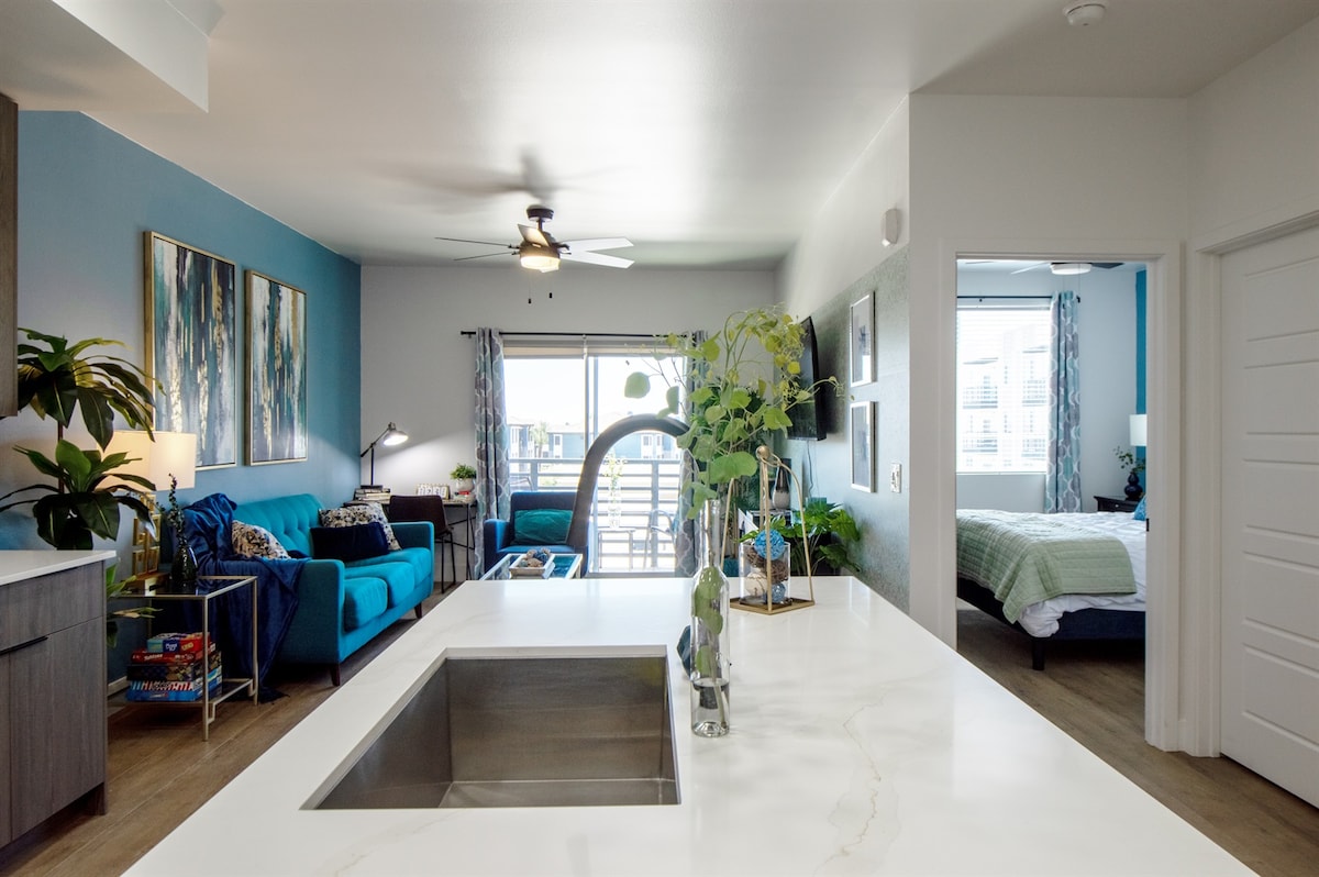 Fáilte go Tempe! Tá gach rud atá uait le haghaidh fanacht suaimhneach sa teach 2BR/1BA seo. Lánfheistithe le soilsiú cliste dimmable agus cainteoirí i ngach seomra, le cistin agus seomra folctha athchóirithe le déanaí a bhfuil eispéireas cosúil le spá ann sa tobán soak, níochán in - aonad, idirlíon ardluais, 86in 4K TV (gach bailiúchán mórshruthaithe agus 300+ scannán, le timpeall.4 san áireamh) agus clós cúil príobháideach, tá an teach seo foirfe do thuras tapa chuig an gcathair, oíche scannáin, nó clós cúil!