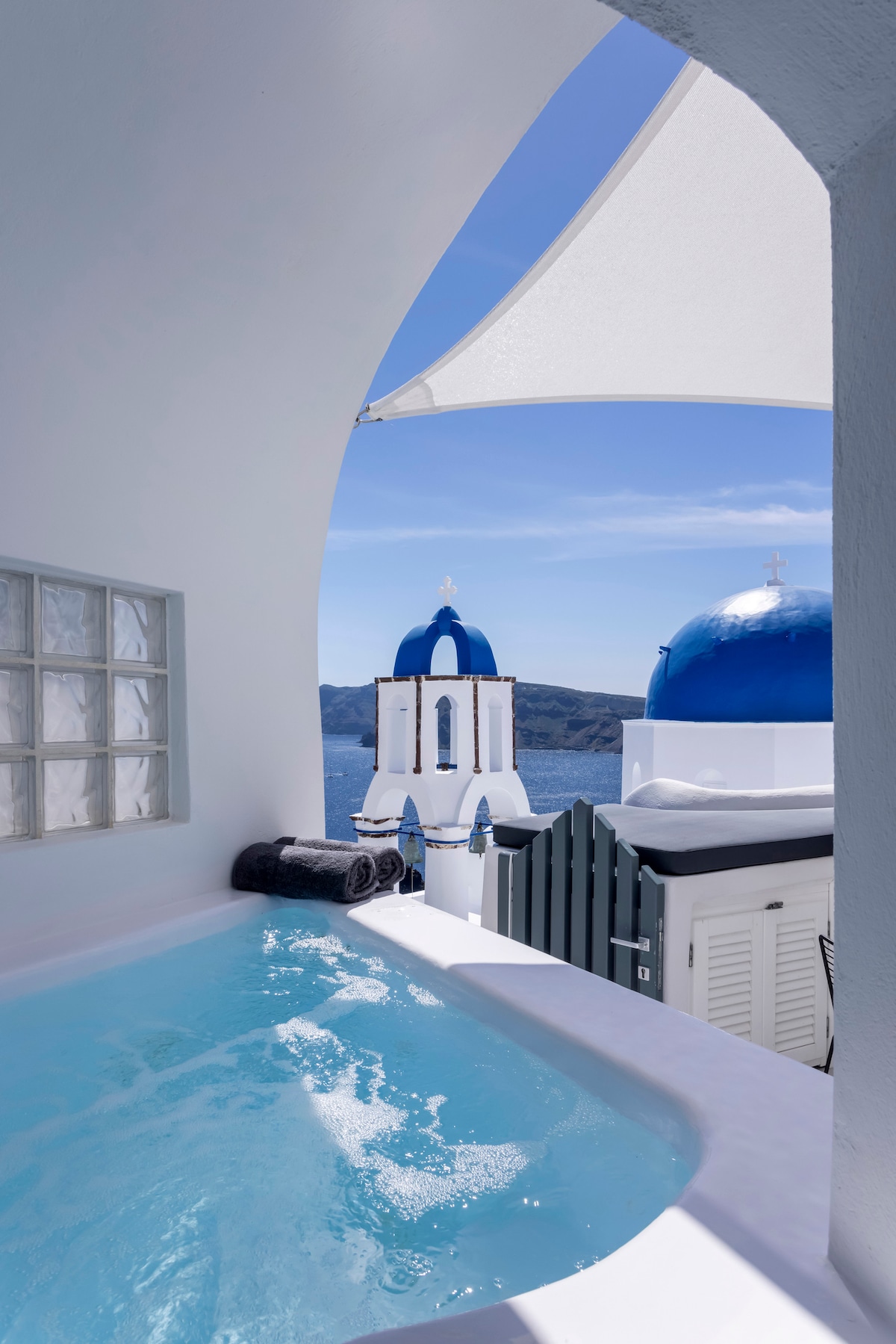 Teach pluaiseacha traidisiúnta atá suite sa suíomh is cáiliúla in Oileán Santorini le cárta poist iontach le radhairc fhoirfe ar na séipéil a bhfuil tóir orthu! 2 sheomra leapa, leapacha dúbailte, 2 sheomra folctha uaimhe. Linn snámha théite lasmuigh le hamharc air! In aice le Santorini gorm, Eternity & teach nua Serenity. Feistithe go hiomlán le gach saoráid, ciseán fáilte, seirbhís laethúil maid/linn snámha, bainisteoir villa chun cabhrú le gach gníomhaíocht. Ár villas eile Santorini gorm,Eternity,Serenity,Captains gorm, Gairdín rúnda,Seoltóireacht & Sky gorm