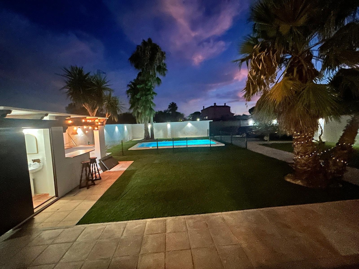 Villa eisceachtúil aonair ar thrá la Barrosa. Suíomh lán le solas, síocháin agus ciúin agus dea - mhothúcháin. Gairdín mór le linn snámha phríobháideach, beárbaiciú, 3 sheomra leapa, 2 sheomra folctha, seomra suí ina bhfuil teallach, seomra bia, cistin, póirse. Ceantar ina bhfuil gach cineál seirbhísí in aice láimhe agus rochtain éasca, 5 nóiméad ón trá agus 15 nóiméad ó ghalfchúrsa Sanctipetri . Feistithe go hiomlán le haghaidh laethanta saoire foirfe. Má tá tú ag lorg áit idéalach le fanacht, ní bheidh díomá ar an teach álainn seo.