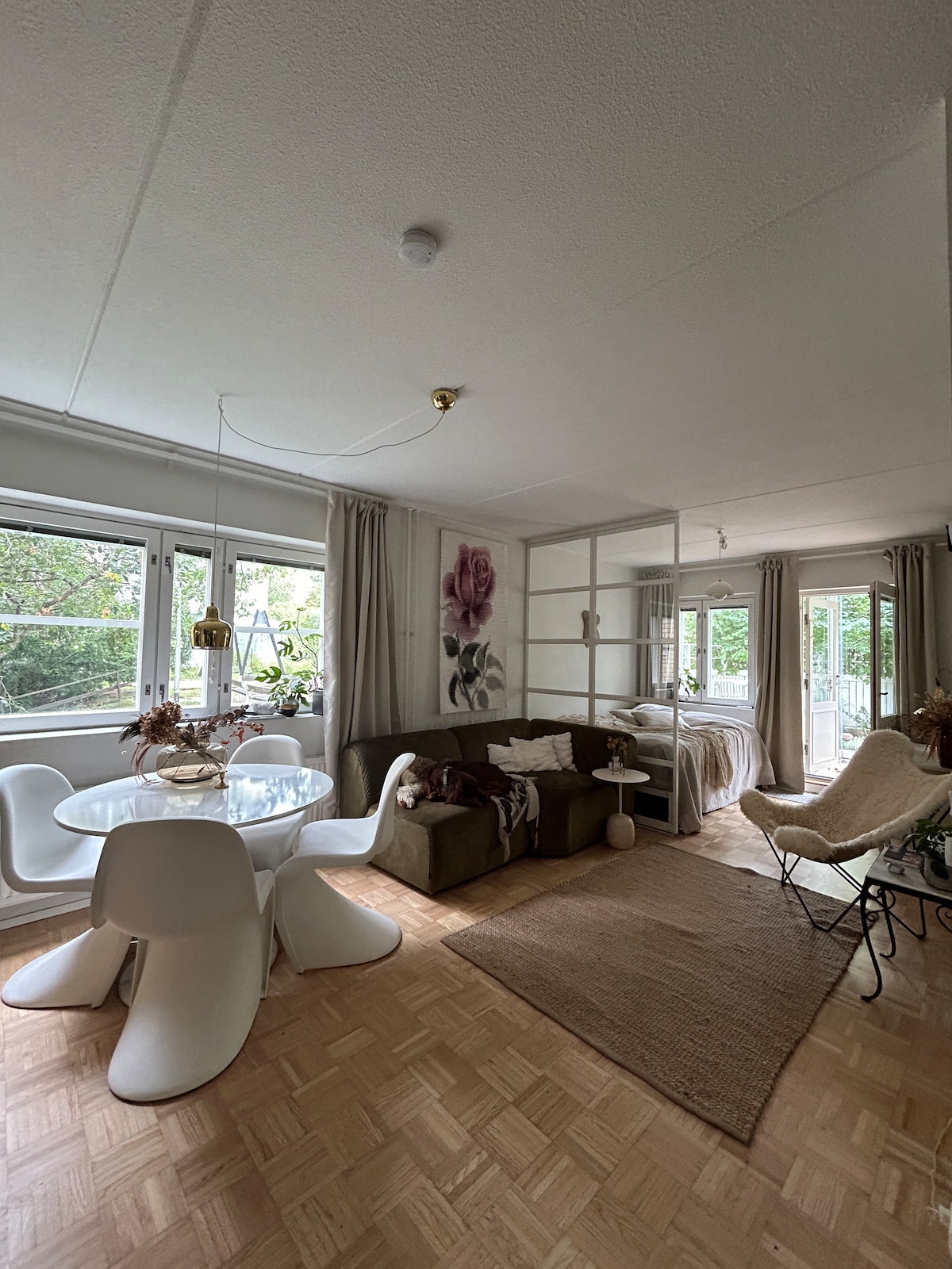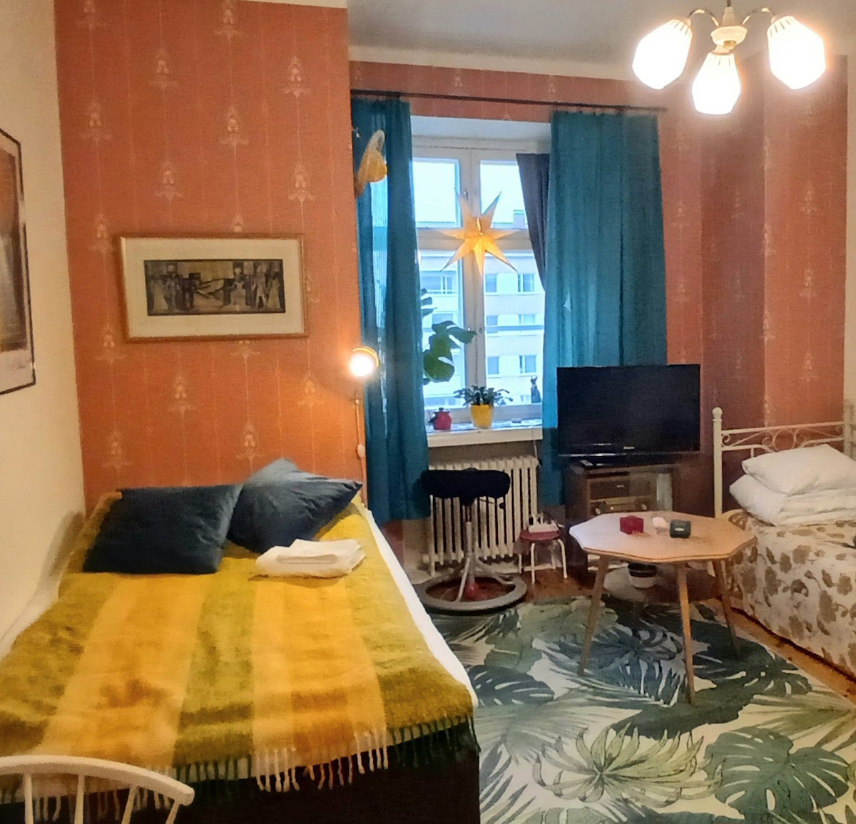 Árasán aon seomra leapa le balcóin, 200m ó stáisiún Pasila agus ón Ionad Taispeántais. Spás páirceála te san íoslach. Seirbhísí cuimsitheacha ionad siopadóireachta Tripla béal dorais. Tá línéadach leapa agus tuáillí san áireamh, chomh maith le tae/caife. Meaisín níocháin sa chistin. Tabhair faoi deara go bhféadfadh go mbeadh torann athchóirithe ciúin ann ón 07-17 ar an 1-2/26 i rith na seachtaine (athchóiriú ag an taobh eile den teach, ní san árasán seo, ní san fhoirgneamh céanna fiú). Beidh athchóiriú ar siúl san fhoirgneamh in aice láimhe ar an 3-4/26, mar sin beidh an torann níos mó. D'fhéadfadh uisce a bheith ar lár i rith na seachtaine. Níl aon núis torainn ann ag an deireadh seachtaine.