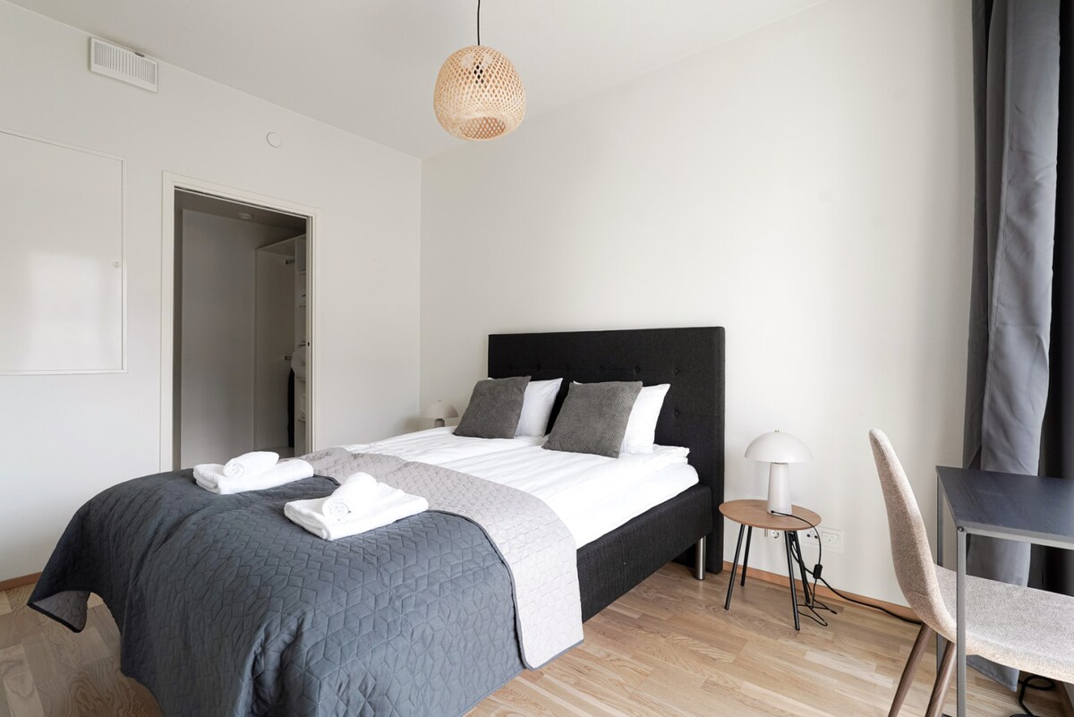 Árasán geal, nua atá feistithe chun foirfeachta, atá suite ar bharr an mheall is mó de chuid Nordics, Tripla. Ollmhargadh Prisma 24/7 & giomnáisiam saor in aisce ar an láthair. Iompar nach féidir a shárú: bus, tram, agus stáisiún traenach i dtógáil. Sroich ionad Heilsincí i 5 nóiméad! Cinntíonn fuaimdhíonadh eisceachtúil ciúin. Níl cosáin Central Park ach 3 nóiméad ar shiúl. Tá an meascán deiridh de shó & áisiúlacht ag fanacht leat!