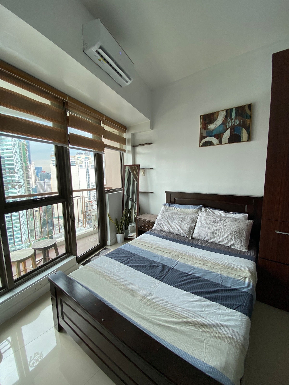 Fáilte chuig ár Airbnb galánta i gcroílár Chathair Dhomhanda Bonifacio (BGC)! Tá cáil ar BGC mar gheall ar a shuíomh den scoth agus a chostais arda lóistín - ach linn, bainfidh tú an luach is fearr as gan cur isteach ar chompord ná ar chaighdeán. ✨ Níl ach siúlóid 3 -5 nóiméad go dtí malls, siopaí agus bialanna Rochtain ✨ saor in aisce ar an linn snámha & ar an sabhna ✨ Cuir meaisín níocháin agus triomadóir ar fáil mar áis duit Roghanna iompair ✨ den scoth in aice láimhe Bain sult as fanacht compordach gan stró ar phraghas nach féidir a shárú. Déan áirithint anois!